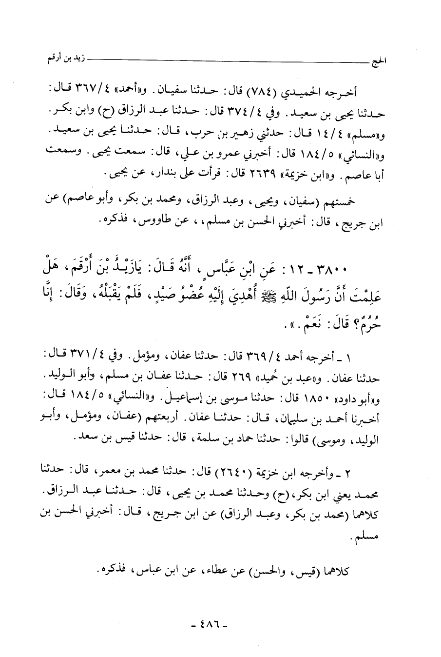 ٣٨٠٠ - عَنِ ابْنِ عَبَّاسٍ، أَنَّهُ قَالَ: يَا زَيْدَ بْنَ أَرْقَمَ، هَلْ عَلِمْتَ؛