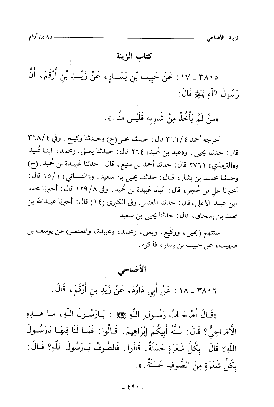 ٣٨٠٥ - عَنْ حَبِيبِ بْنِ يَسَارٍ، عَنْ زَيْدِ بْنِ أَرْقَمَ، أَنَّ رَسُولَ اللهِ صلى الله عليه وسلم قَالَ: