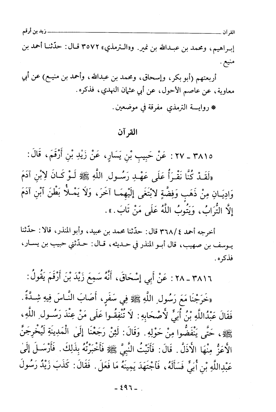 ٣٨١٦ - عَنْ أَبِي إِسْحَاقَ، أَنَّهُ سَمِعَ زَيْدَ بْنَ أَرْقَمَ يَقُولُ: