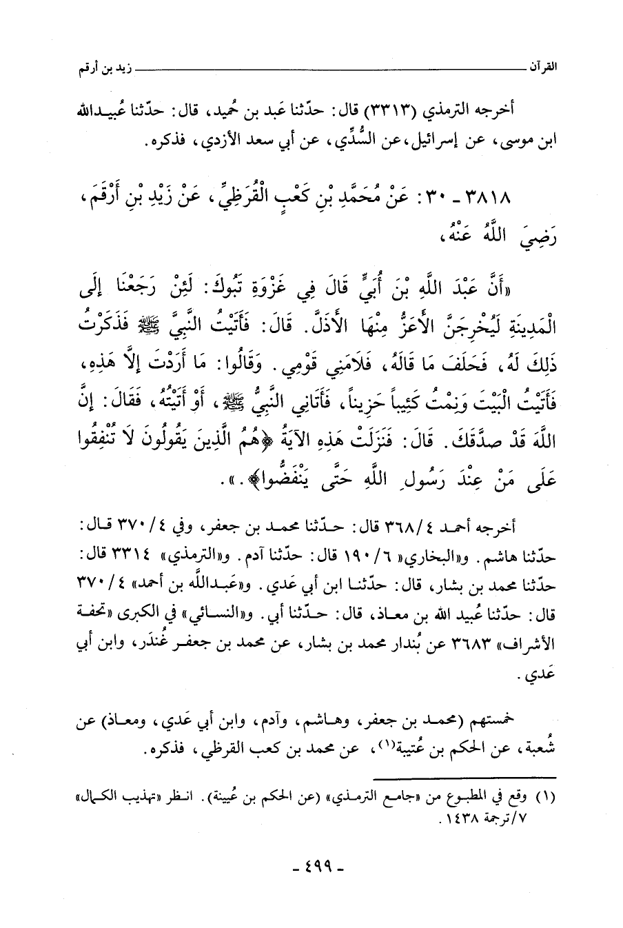 ٣٨١٨ - عَنْ مُحَمَّدِ بْنِ كَعْبٍ الْقُرَظِيِّ، عَنْ زَيْدِ بْنِ أَرْقَمَ، رَضِيَ اللهُ عَنْهُ؛