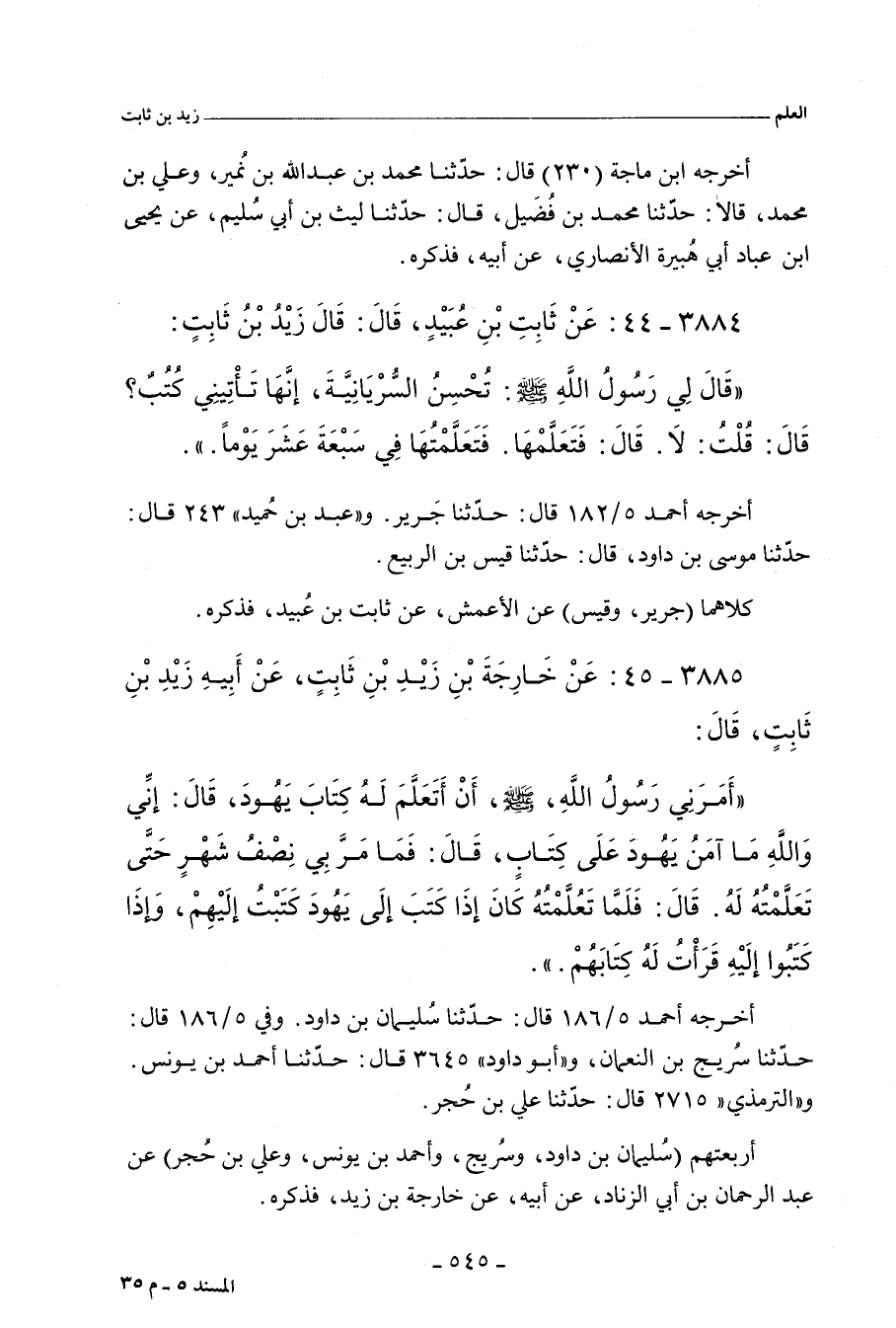 ٣٨٨٤ - عَنْ ثَابِتِ بْنِ عُبَيْدٍ، قَالَ: قَالَ زَيْدُ بْنُ ثَابِتٍ: