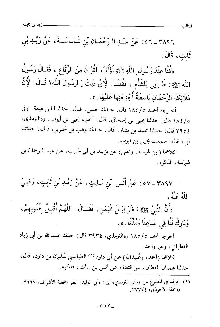 ٣٨٩٦ - عَنْ عَبْدِ الرَّحْمَانِ بْنِ شَِمَاسَةَ، عَنْ زَيْدِ بْنِ ثَابِتٍ، قَالَ: