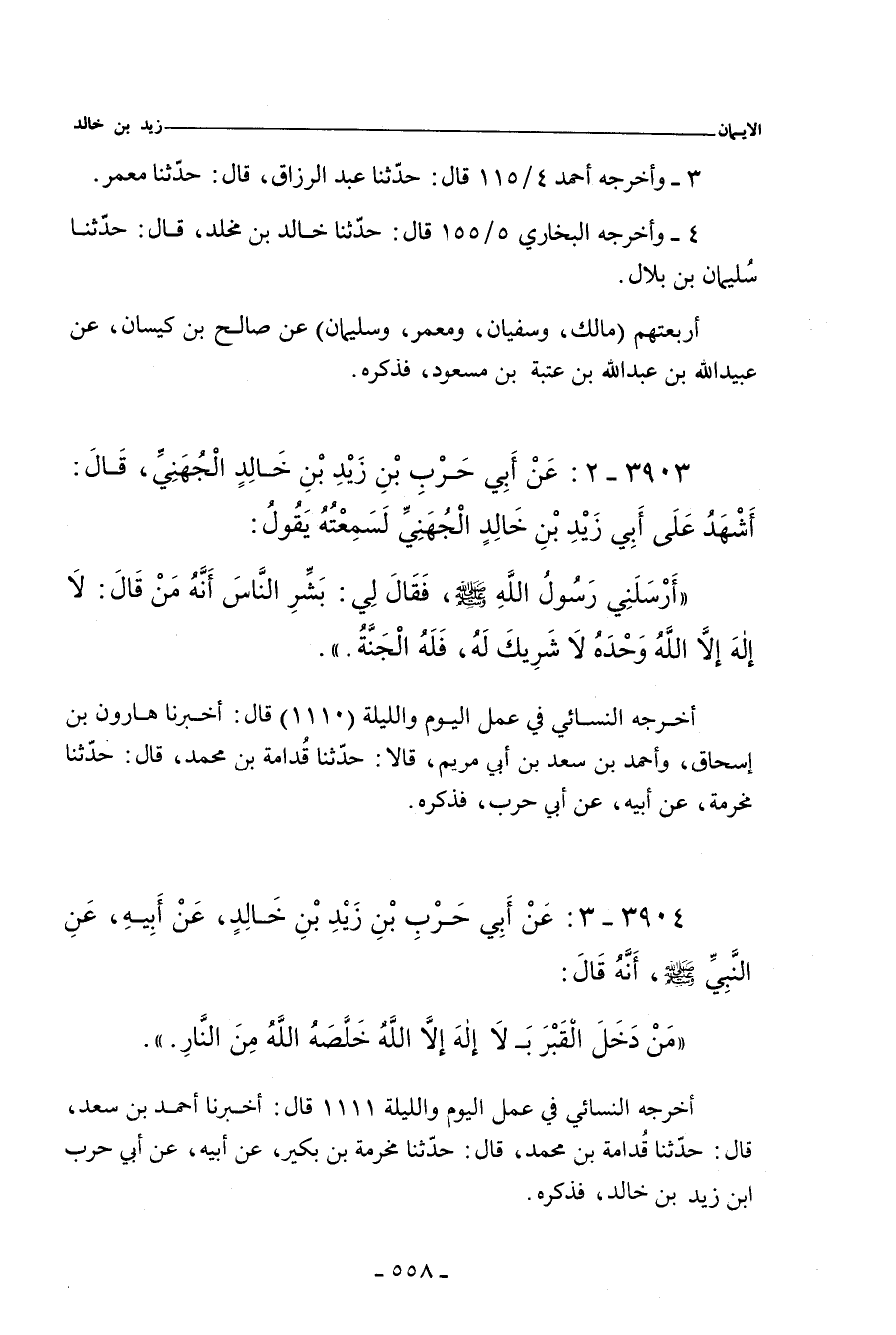 ٣٩٠٤ - عَنْ أَبِي حَرْبِ بْنِ زَيْدِ بْنِ خَالِدٍ، عَنْ أَبِيهِ، عَنِ النَّبِىِّ صلى الله عليه وسلم، أَنَّهُ قَالَ: