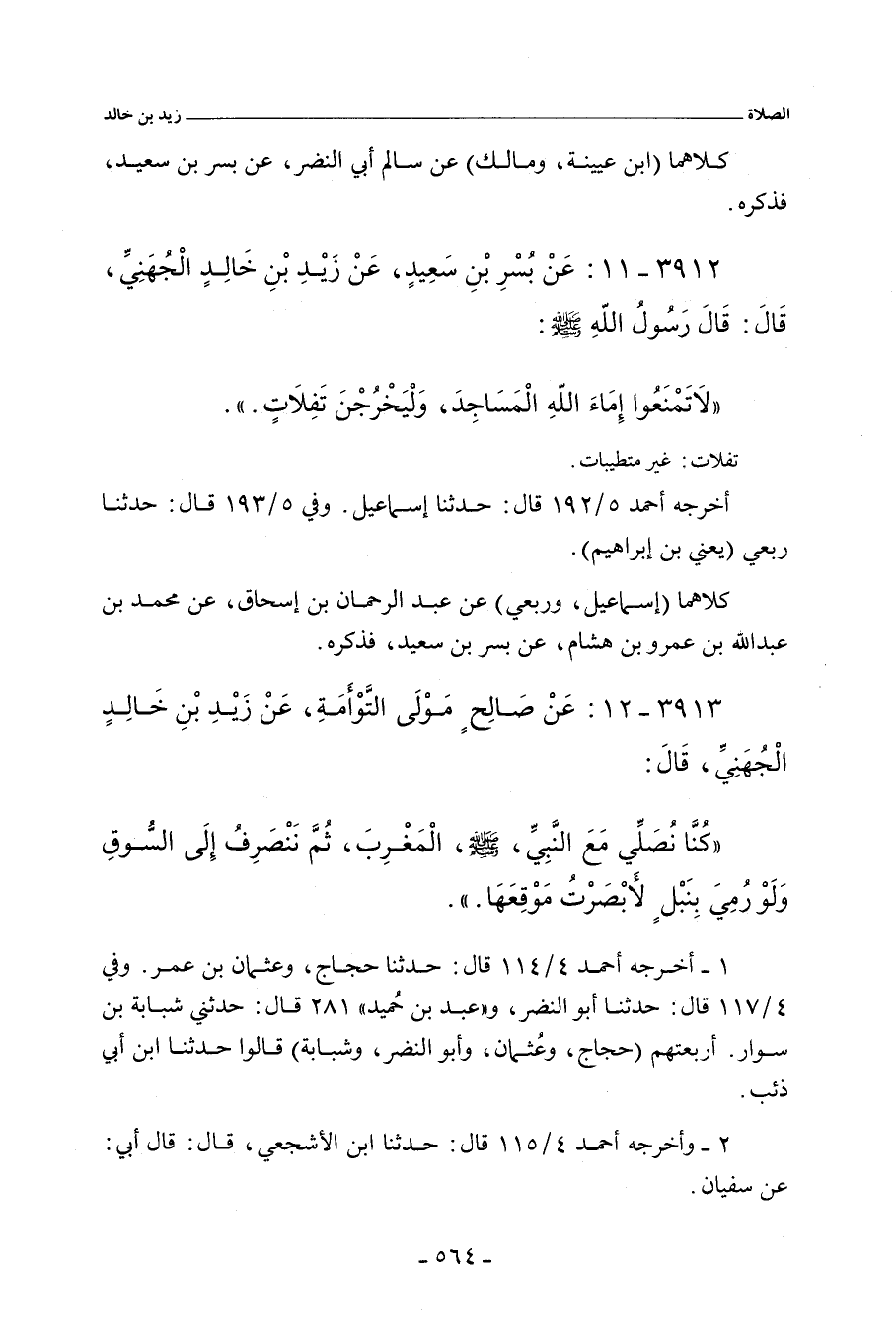 ٣٩١٣ - عَنْ صَالِحٍ، مَوْلَى التَّوْأَمَةِ، عَنْ زَيْدِ بْنِ خَالِدٍ الْجُهَنِيِّ، قَالَ: