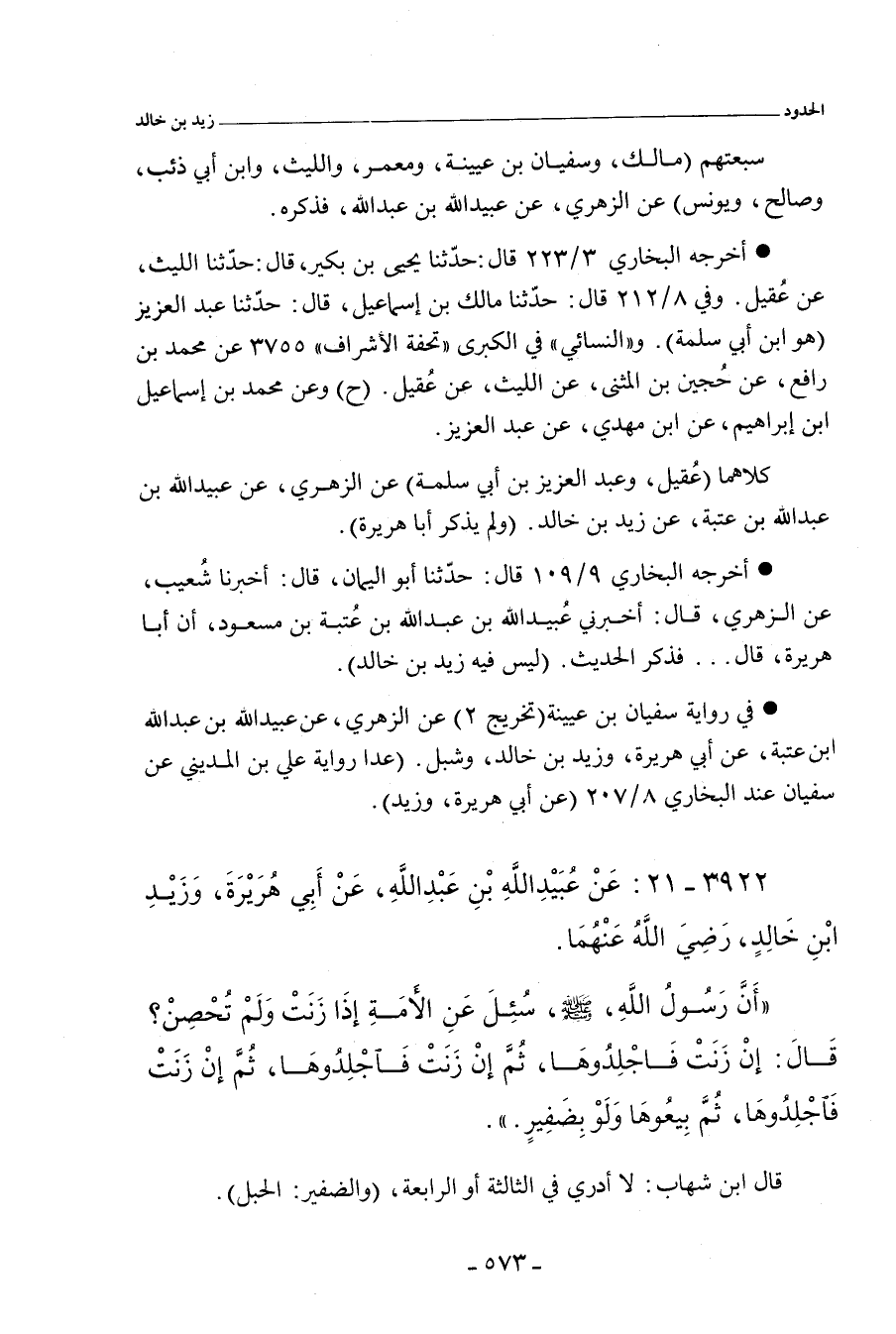 ثلاثتهم (عُقَيْل، وعَبْد العَزِيز، وصالح بن كَيْسَان) عن ابن شِهَاب الزُّهْرِي، عَنْ عُبَيْدِ اللهِِ بْنِ عَبْدِ اللهِ بْنِ عُتْبَة، عَنْ زَيْدِ بْنِ خَالِدٍ الْجُهَنِيِّ، قَالَ: