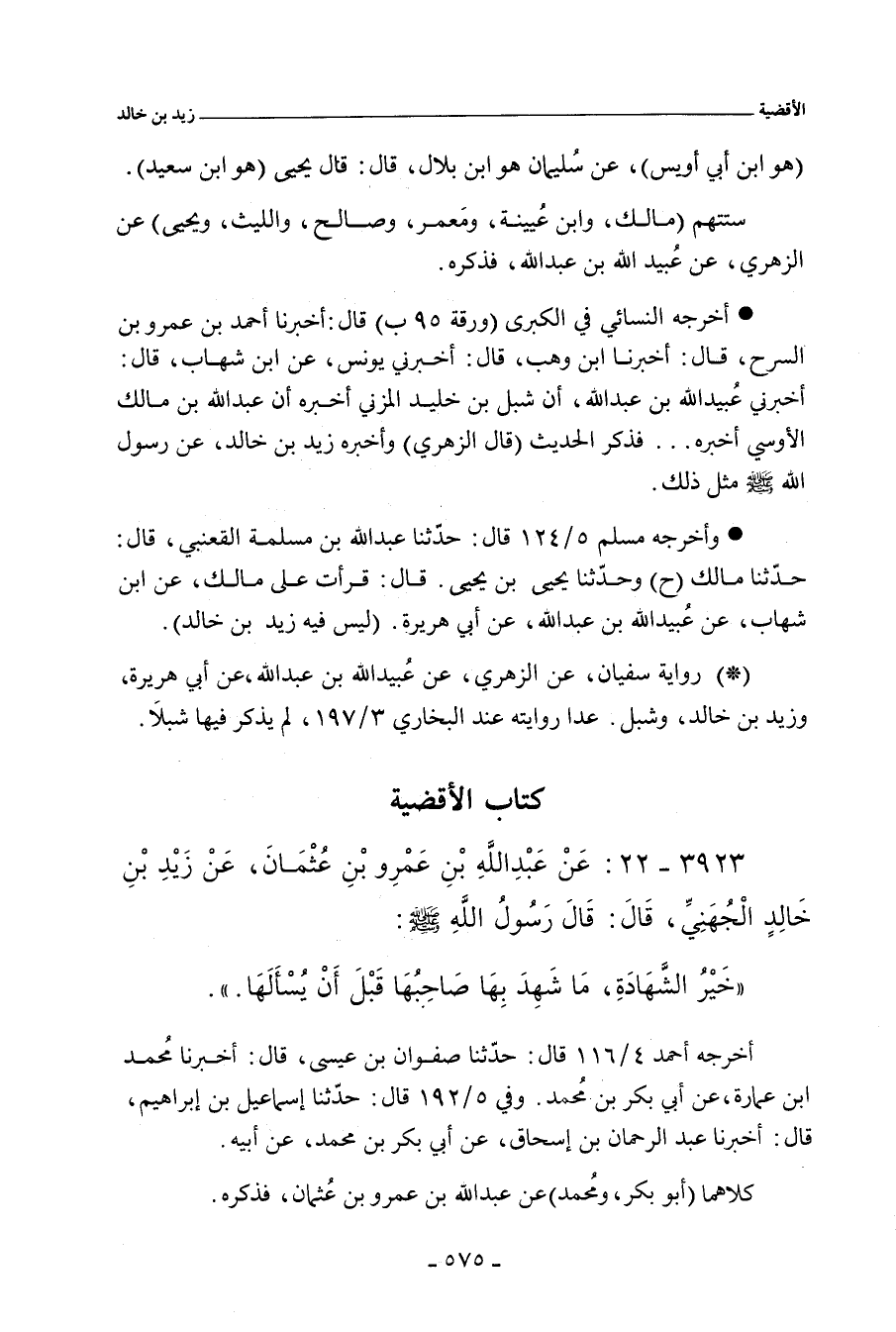 خمستهم (الحُمَيْدِي، وأحمد بن حَنْبَل، وابن أَبِي شَيْبَة، وابن الصَّبَّاح، والحارث بن مِسْكِين) عن سُفْيان بن عُيَيْنَة، عن الزُّهْرِي، عَنْ عُبَيْدِ اللهِِ بْنِ عَبْدِ اللهِ، عَنْ أَبِي هُرَيْرَةَ، وزَيْدِ بْنِ خَالِدٍ، وَشِبْلٍ، قَالُوا:
