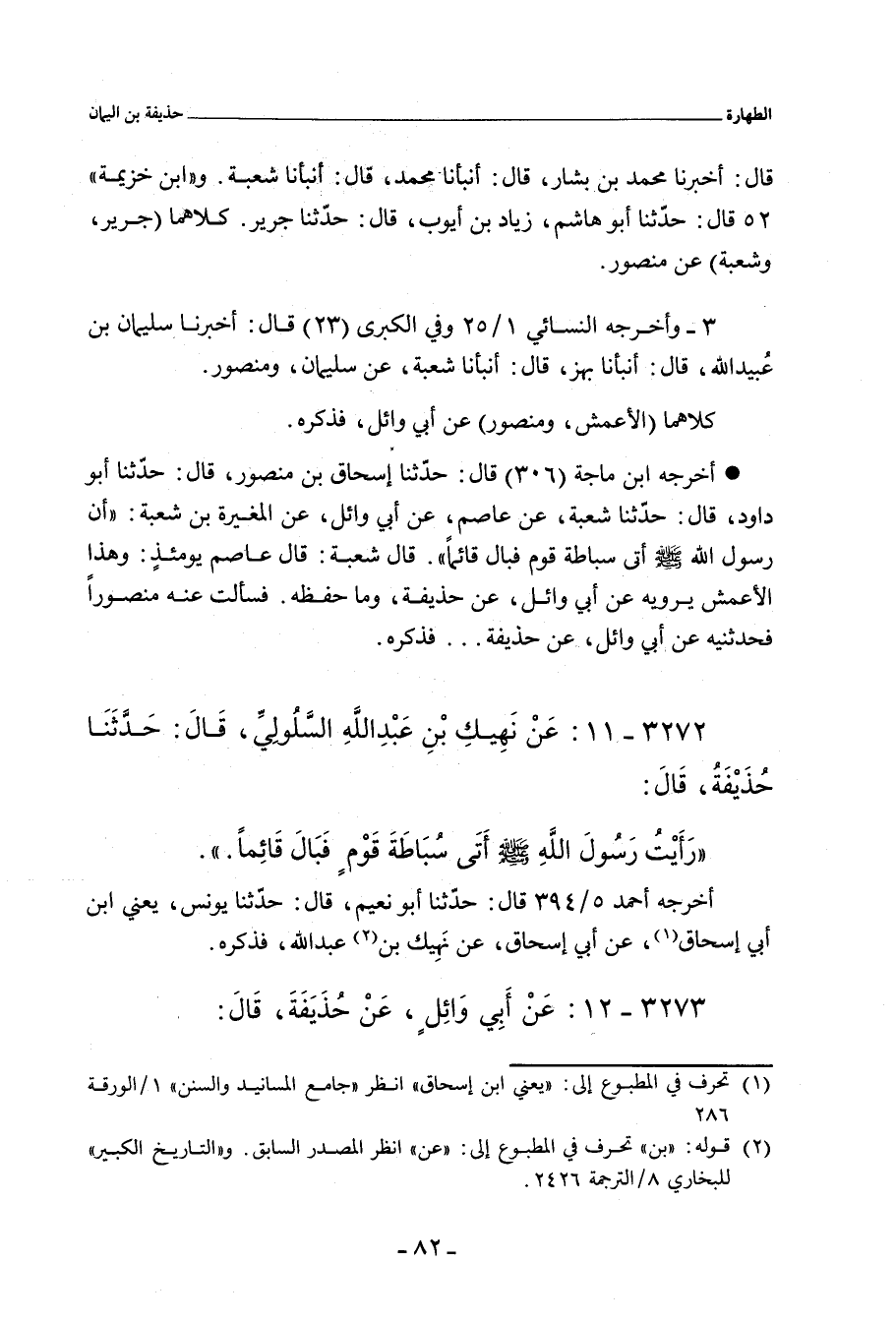 قال: أخبرنا مُحَمَّد بن بَشَّار، قال: أنبأنا مُحَمَّد، قال: أنبأنا شُعْبة. و"ابن خزيمة" ٥٢ قال: حدَّثنا أبو هاشم، زِيَاد بن أَيُّوب، قال: حدَّثنا جَرِير. كلاهما (جَرِير، وشُعْبة) عن مَنْصُور.