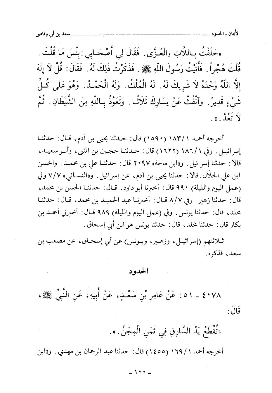 حَلَفْتُ بِاللَاّتِ وَالْعُزَّى. فَقَالَ لِى أَصْحَابِى: بِئْسَ مَا قُلْتَ، قُلْتَ هُجْرًا، فَأَتَيْتُ رَسُولَ الله صلى الله عليه وسلم، فَذَكَرْتُ ذَلِكَ لَهُ، فَقَالَ ك قُلْ لَا إِلَهَ إِلَاّ اللهُ، وَحْدَهُ لَا شَرِيكَ لَهُ، لَهُ الْمُلْكُ، وَلَهُ الْحَمْدُ، وَهُوَ عَلَى كُلِّ شَىْءٍ قَدِيرٌ، وَانْفُثْ عَنْ يَسَارِكَ ثَلَاثًا، وَتَعَوَّذْ بِاللهِ مِنَ الشَّيْطَانِ، ثُمَّ لَا تَعُدْ.