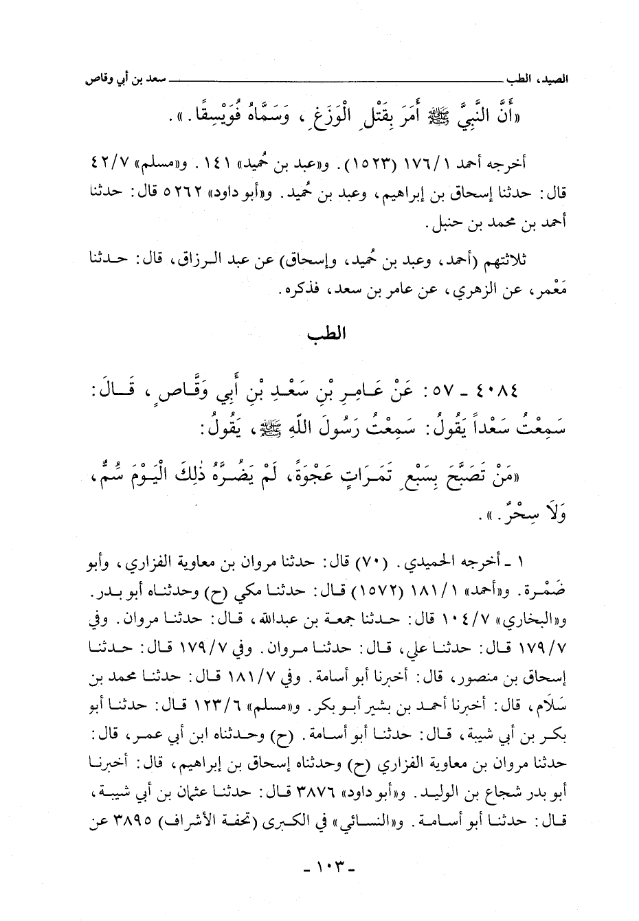 أخرجه الحميدي (٧٠) قال: حدثنا مروان بن معاوية الفزاري، وأبو ضمرة، قالَا: حدثنا هاشم بن هاشم بن عتبة بن أَبي وقاص. و"أحمد" ١/ ١٦٨ (١٤٤٢) و ١/ ١٧٧ (١٥٧٢) قال: حدثنا عبد الملك بن عَمرو، حدثنا فُليح، عن عبد الله بن عبد الرحمن، يعني ابن مَعمر. وفي ١/ ١٨١ (٥٧٢ ا) قال: حدثنا مَكي، حدثنا هاشم (ح) وحدثنا هـ أبو بدر، عن هاشم. و"البخاري) ٧/ ١٠٤ (٥٤٤٥) قال: حدثنا جمعة بن عبد الله، حدثنا مروان، أخبرنا هاشم بن هاشم. وفي ٧/ ١٧٩ (٥٧٦٨) قال: حدثنا علي، حدثنا مروان، أخبرنا هاشم. وفي ٧/ ١٧٩ (٥٧٦٩) قال: حدثنا إسحاق بن منصور، أخبرنا أبو أُسامة، حدثنا هاشم بن هاشم. وفي ٧/ ١٨١ (٥٧٦٩) قال: حدثنا محمد بن سلَام، حدثنا أحمد بن بشير أبو بكر، أخبرنا هاشم بن هاشم. و"مسلم" ٦/ ١٢٣ (٥٣٨٨) قال: حدثنا عَبْد الله بن مَسلمة بن قَعنب، حدثنا سليمان، يعني ابن بلال، عن عبد الله بن عبد الرحمن. وفي (٥٣٨٩) قال: حدثنا أبو بكر بن أَبي شيبة، حدثنا أبو أُسامة، عن هاشم بن هاشم. وفي (٥٣٩٠) قال: وحدثنا هـ ابن أَبي عُمر، حدثنا مروان بن معاوية الفزاري (ح) وحدثنا هـ إسحاق بن إبراهيم، أخبرنا أبو بدر شجاع بن الوليد، كلاهما عن هاشم بن هاشم. و "أبو داود"٣٨٧٦ قال: حدثنا عثمان بن أَبي شيبة، حدثنا أبو أُسامة، حدثنا هاشم بن هاشم و"النَّسَائي" في "الكبرى"٦٦٨٠ قال: أخبرنا