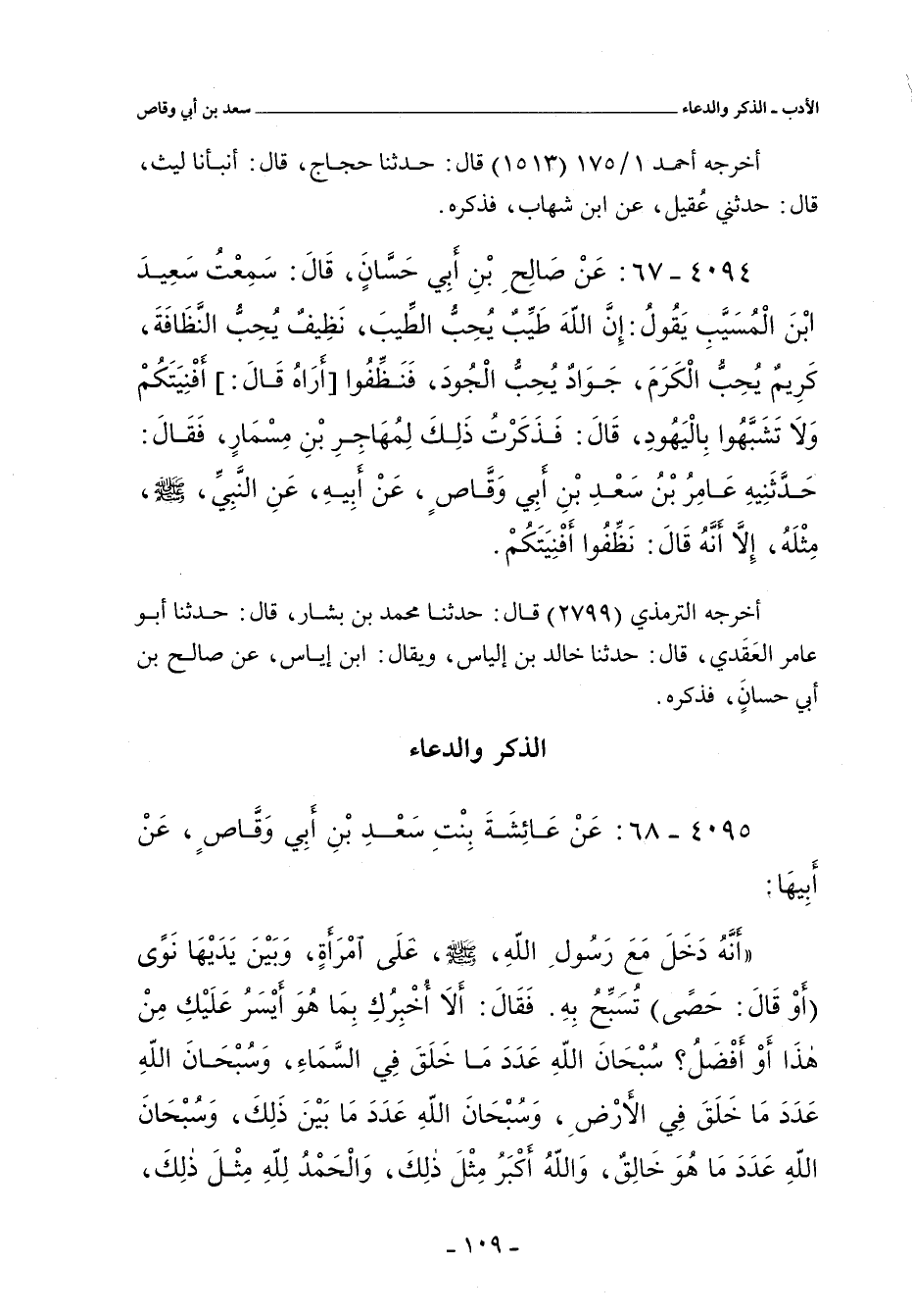 ٤٠٩٥ - عَنْ عَائِشَةَ بِنْتِ سَعْدِ بْنِ أَبِى وَقَّاصٍ، عَنْ أَبِيهَا؛