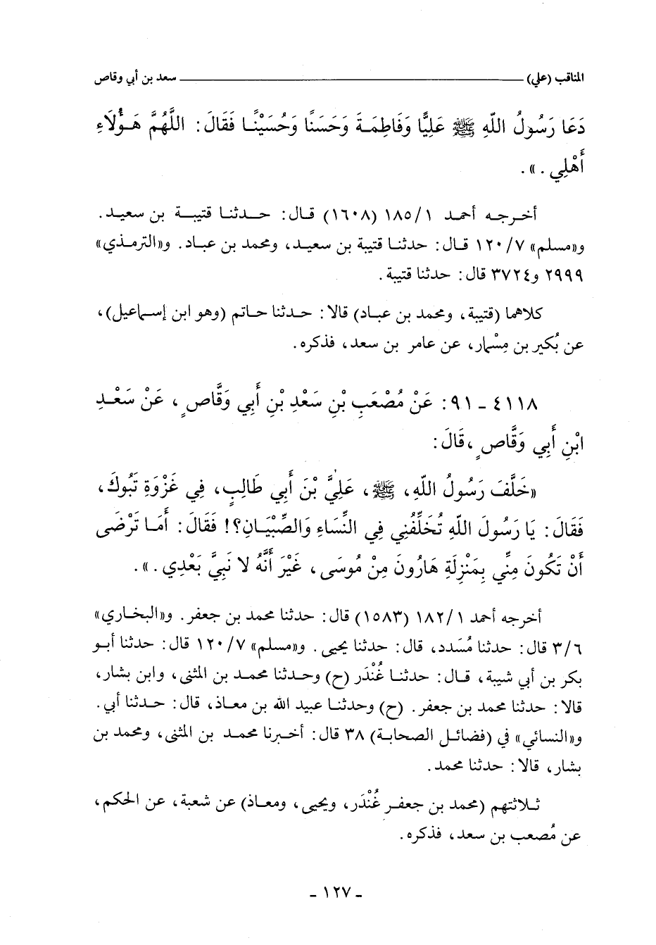٤١١٨ - عَنْ مُصْعَبِ بْنِ سَعْدِ بْنِ أَبِى وَقَّاصٍ، عَنْ سَعْدِ بْنِ أَبِى وَقَّاصٍ، قَالَ: