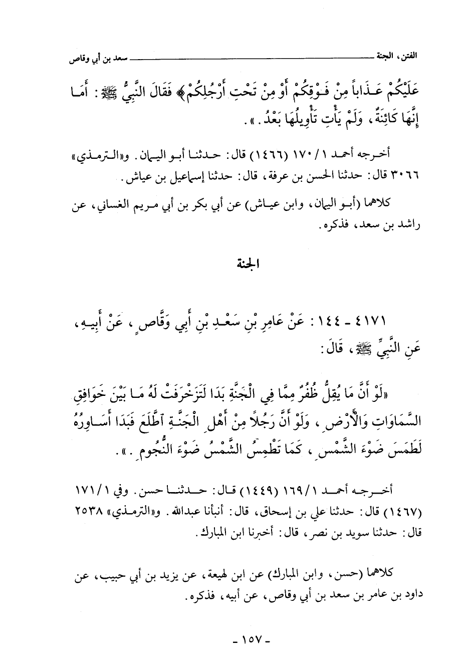 ٤١٧١ - عن عَامِرِ بْنِ سَعْدِ بْنِ أَبِى وَقَّاصٍ , عَنْ أَبِيهِ , عَنِ النَّبِىِّ صلى الله عليه وسلم, قَالَ: