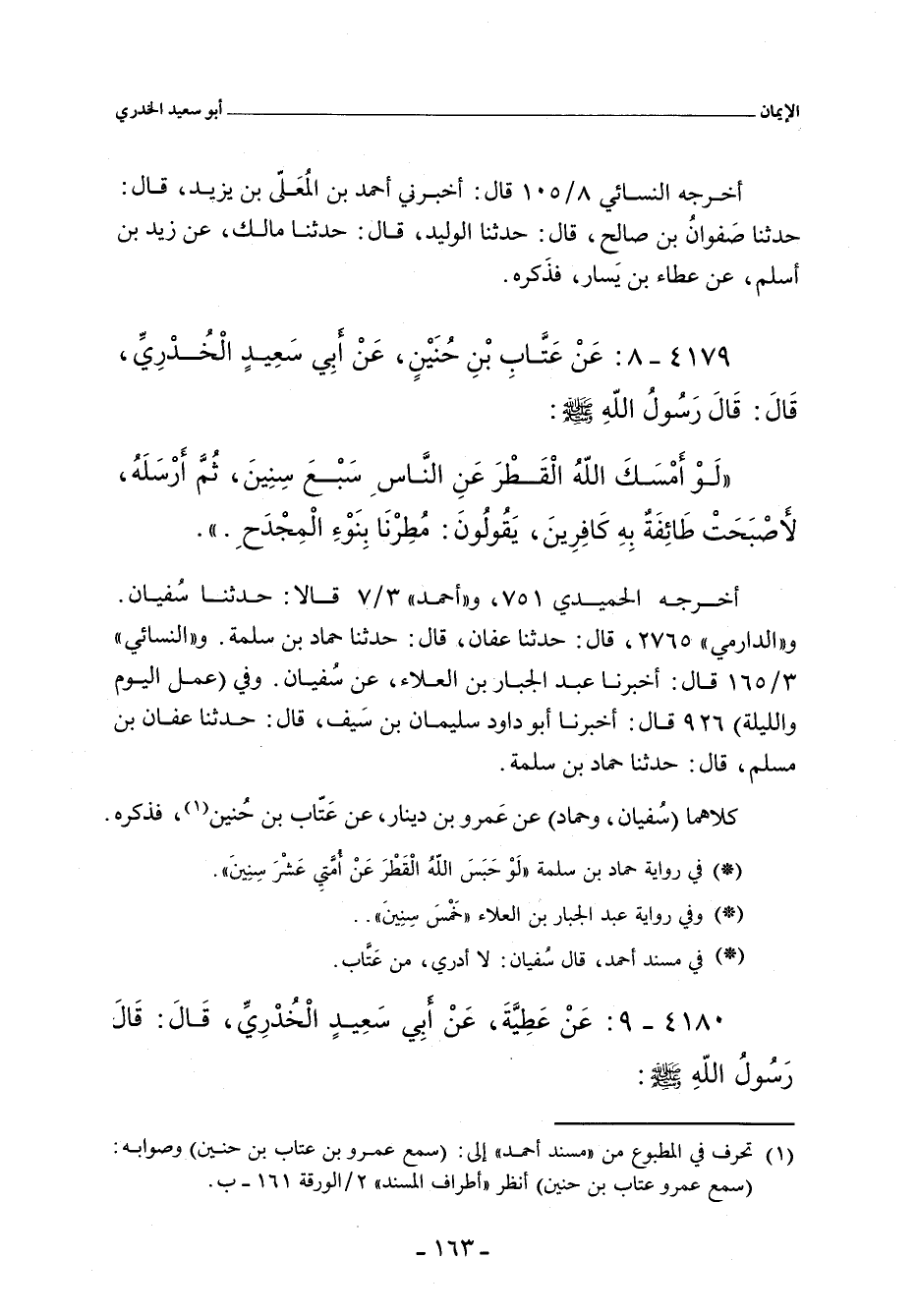 ٤١٧٩ - عَنْ عَتَّابِ بْنِ حُنَيْنٍ، عَنْ أَبِِي سَعِيدٍ الْخُدْرِيِّ، قَالَ: قَالَ رَسُولُ اللهِ صلى الله عليه وسلم:
