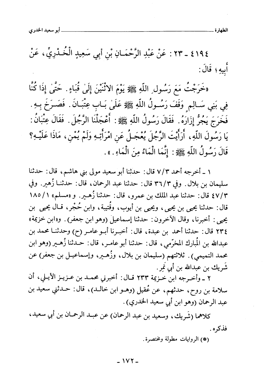 ٤١٩٤ - عَنْ عَبْدِ الرَّحْمَانِ بْنِ أَبِِي سَعِيدٍ الخُدْرِيِّ، عَنْ أَبِيهِ؛ قَالَ: