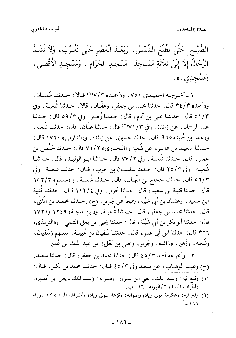 الصُّبْحِ حَتَّى تَطْلُعَ الشَّمْسُ، وَبَعْدَ الْعَصْرِ حَتَّى تَغْرُبَ , وَلَا تُشَدُّ الرِّحَالُ إِلَاّ إِلَى ثَلَاثَةِ مَسَاجِدَ: مَسْجِدِ الْحَرَامِ، وَمَسْجِدِ الأَقْصَى، وَمَسْجِدِي.