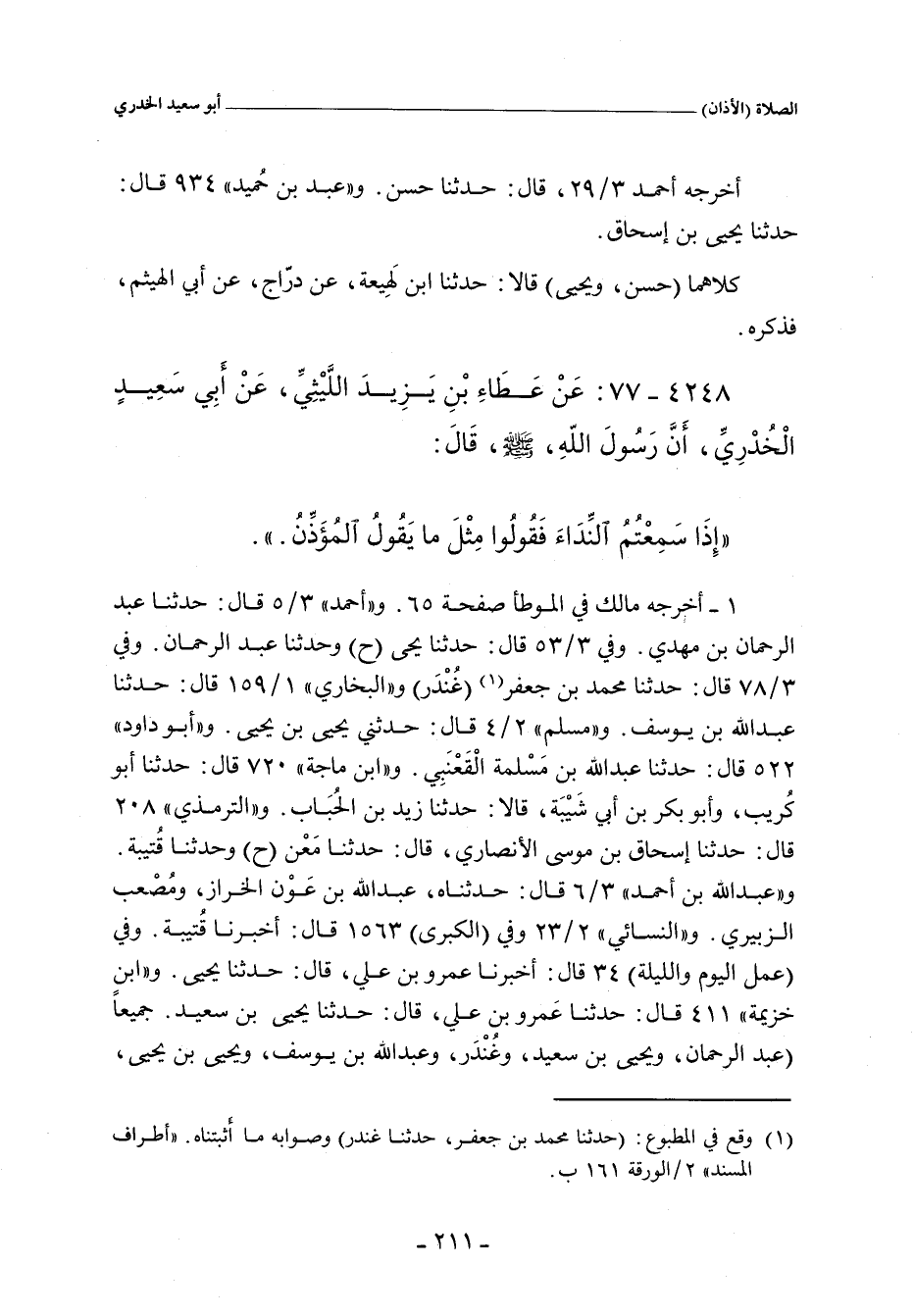 إِذَا سَمِعْتُمُ النِّدَاءَ فَقُولُوا مِثْلَ مَا يَقُولُ الْمُؤَذِّنُ.