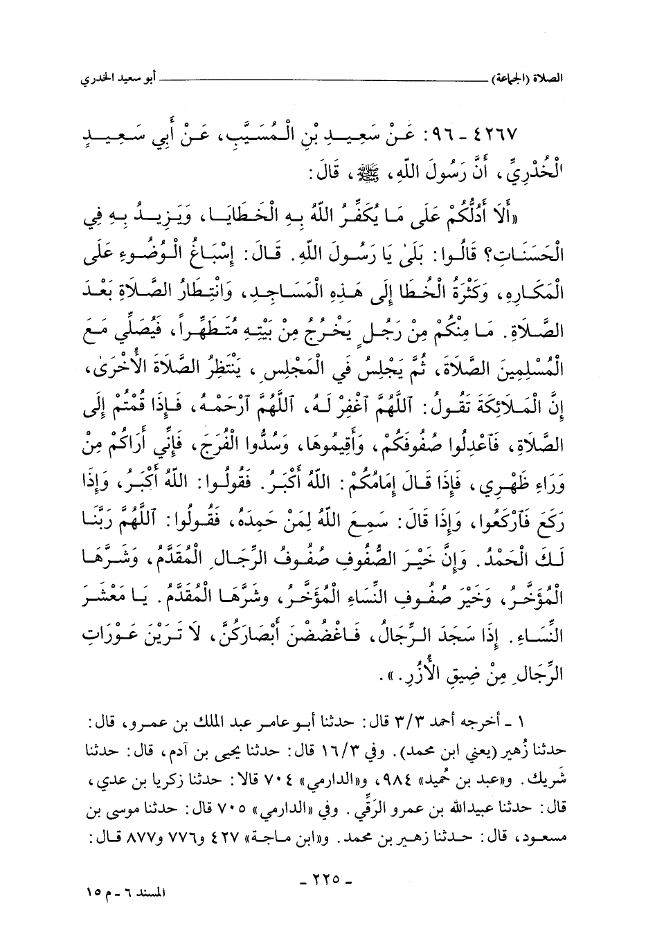 وَإِنَّ خَيْرَ الصُّفُوفِ صُفُوفِ الرِّجَالِ الْمُقَدَّمُ، وَشَرُّهَا الْمُؤَخَّرُ، وَخَيْرُ صُفُوفِ النِّسَاءِ الْمُؤَخَّرُ، وشَرُّهَا الْمُقَدَّمُ.