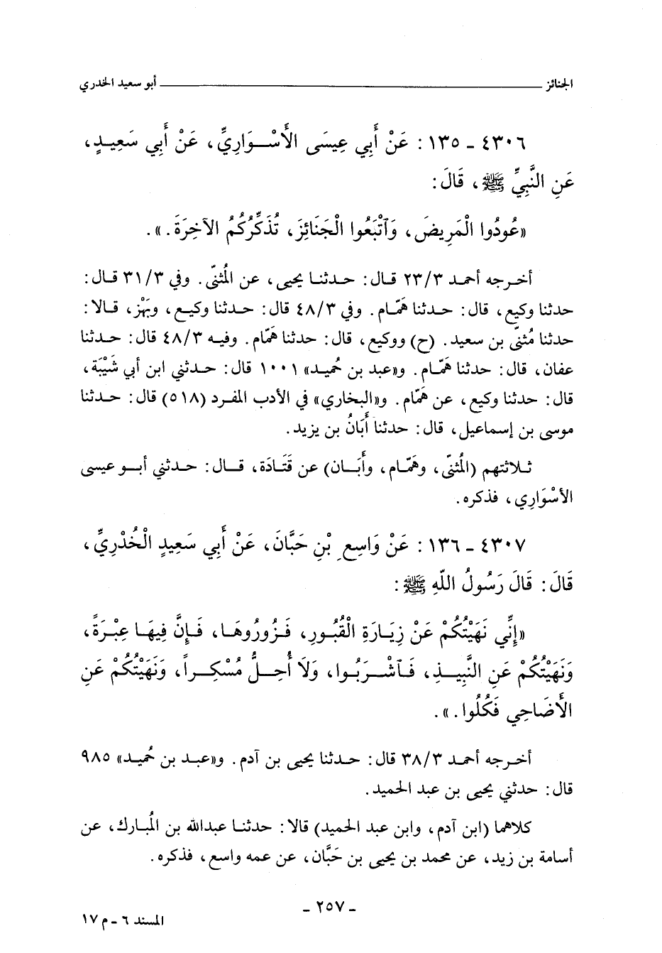 ٤٣٠٦ - عن أبى عِيسَى ألأُسْوَاري، عَنْ أَبي سَعِيدٍ، عَن االنبي صلى الله عليه وسلم، قَالَ: