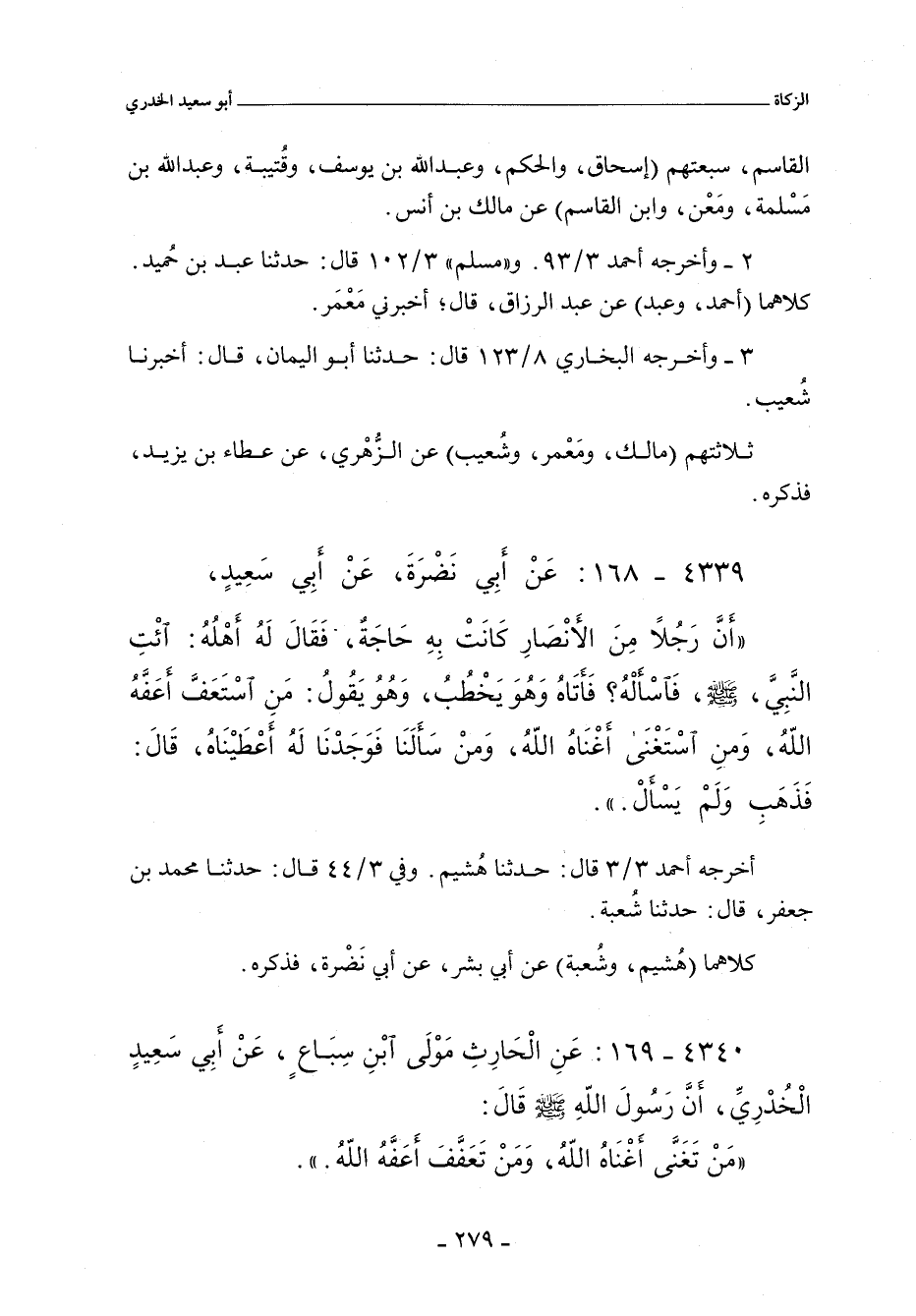 - لفظ شُعْبة: مَنِ اَسْتَعَفَّ أعفه الله، وَمَنِ اَسْتَغْنَى أَغْنَاهُ الله، وَمَنْ سَأَلَنَا شَيْئًا، فَوَجَدْنَاهُ، أَعْطَيْنَاهُ إِياهُ.