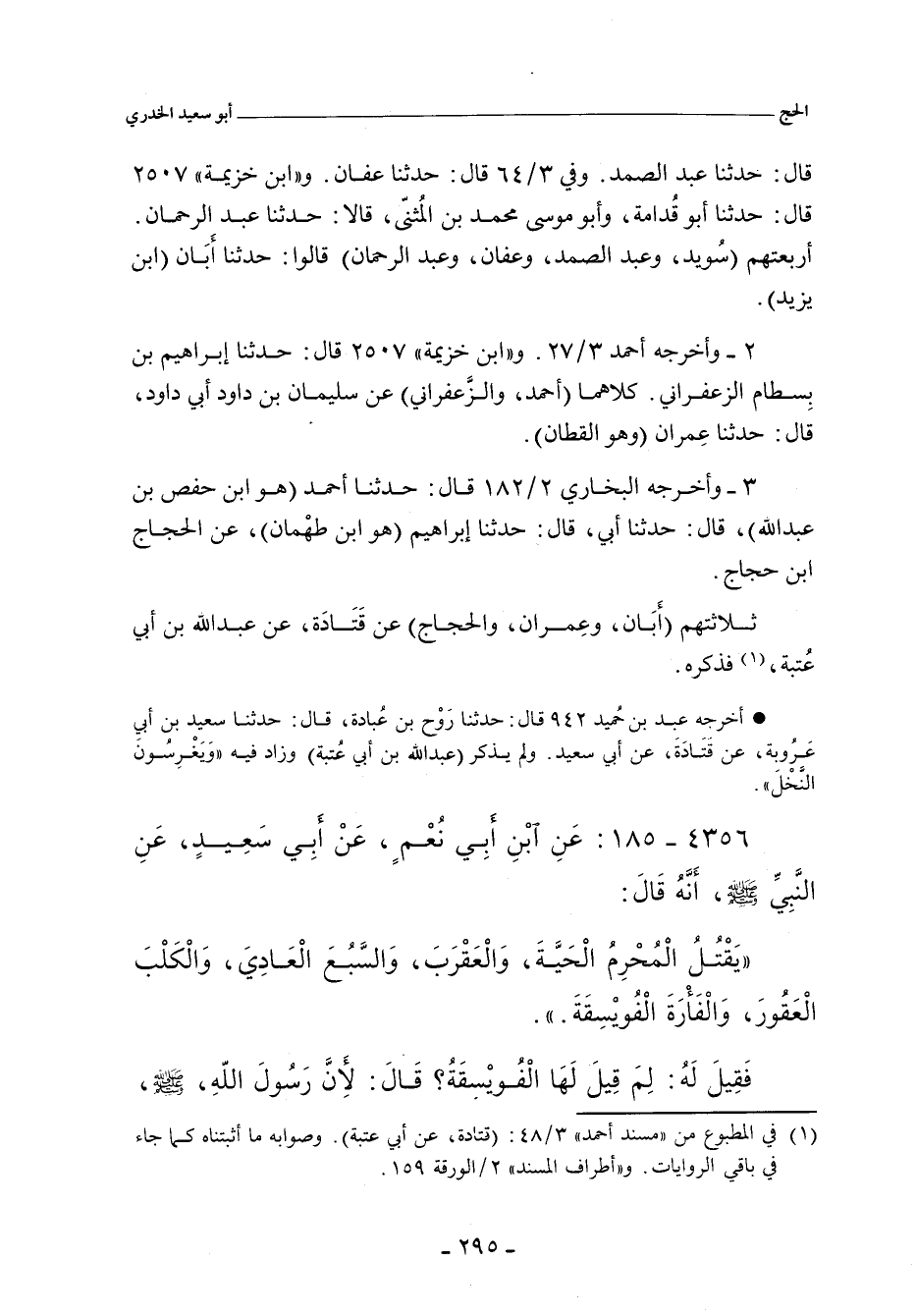 قال: حدَّثنا عَبْد الصَّمَد، حدَّثنا أَبَان. وفي ٣/ ٦٤ (١١٦٤٠) قال: حدَّثنا عَفَّان. قال: حدَّثنا أَبَان. و"البُخَارِي" ٢/ ١٨٢ (١٥٩٣) قال: حدَّثنا أحمد، حدَّثنا أَبي، حدَّثنا إبراهيم , عن الحجاج بن حَجَّاج. و"ابن خزيمة" ٢٥٠٧ قال: حدَّثنا أبو قدامة , وأبو مُوسَى مُحَمد بن المُثَنَّى , قالا: حدَّثنا عَبْد الرَّحْمان , حدَّثنا أَبَان بن يَزِيد (ح) وحدَّثنا إبراهيم بن بسطام الزعفراني، حدَّثنا أبو داود، حدَّثنا عِمْرَان، وهو القَظان.
