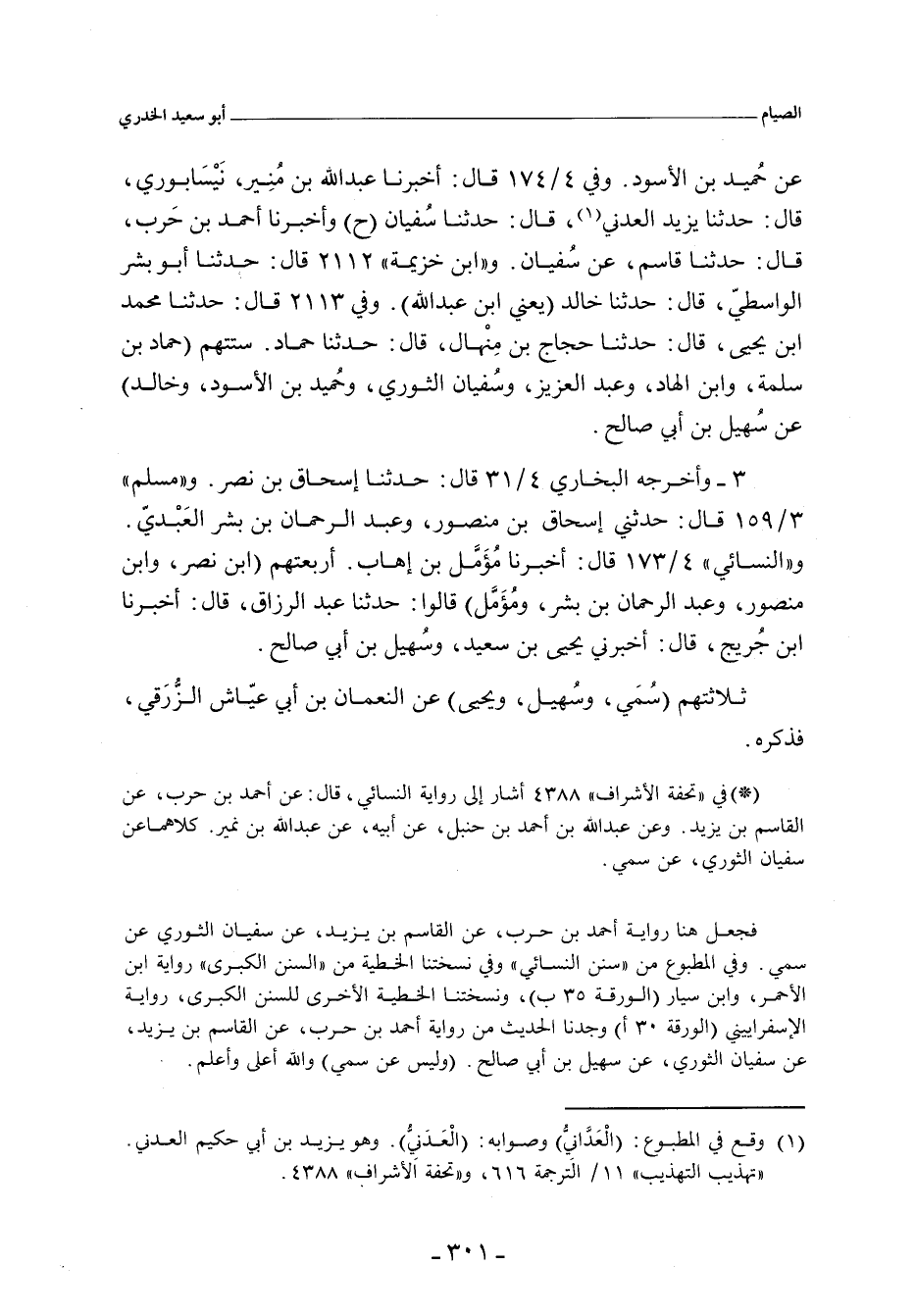 - أخرجه أحمد ٣/ ٢٦ (١١٢٢٨) و ٣/ ٥٩ (١١٥٨١. والنسائي ٤/ ١٧٤ , وفي "الكبرى" ٢٥٧٣ قال: أخبرنا عَبْد اللهِ بن أحمد بن مُحَمد بن حَنْبل. قال: قرأْتُ على أَبي: حدثكم ابن نُمَيْر , قال: حدَّثنا سُفْيان، عن سُمَي.