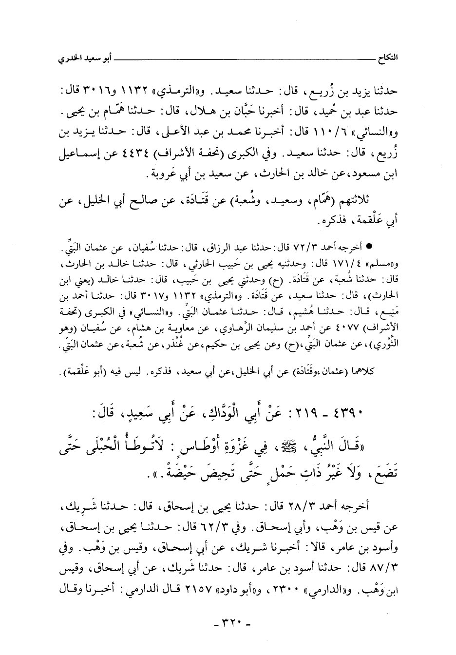 كلاهما (عُثْمَان، وقَتَادَة) عن أَبي الخليل، عن أَبي سَعِيد، فذكره. ليس فيه (أبو علقمة.