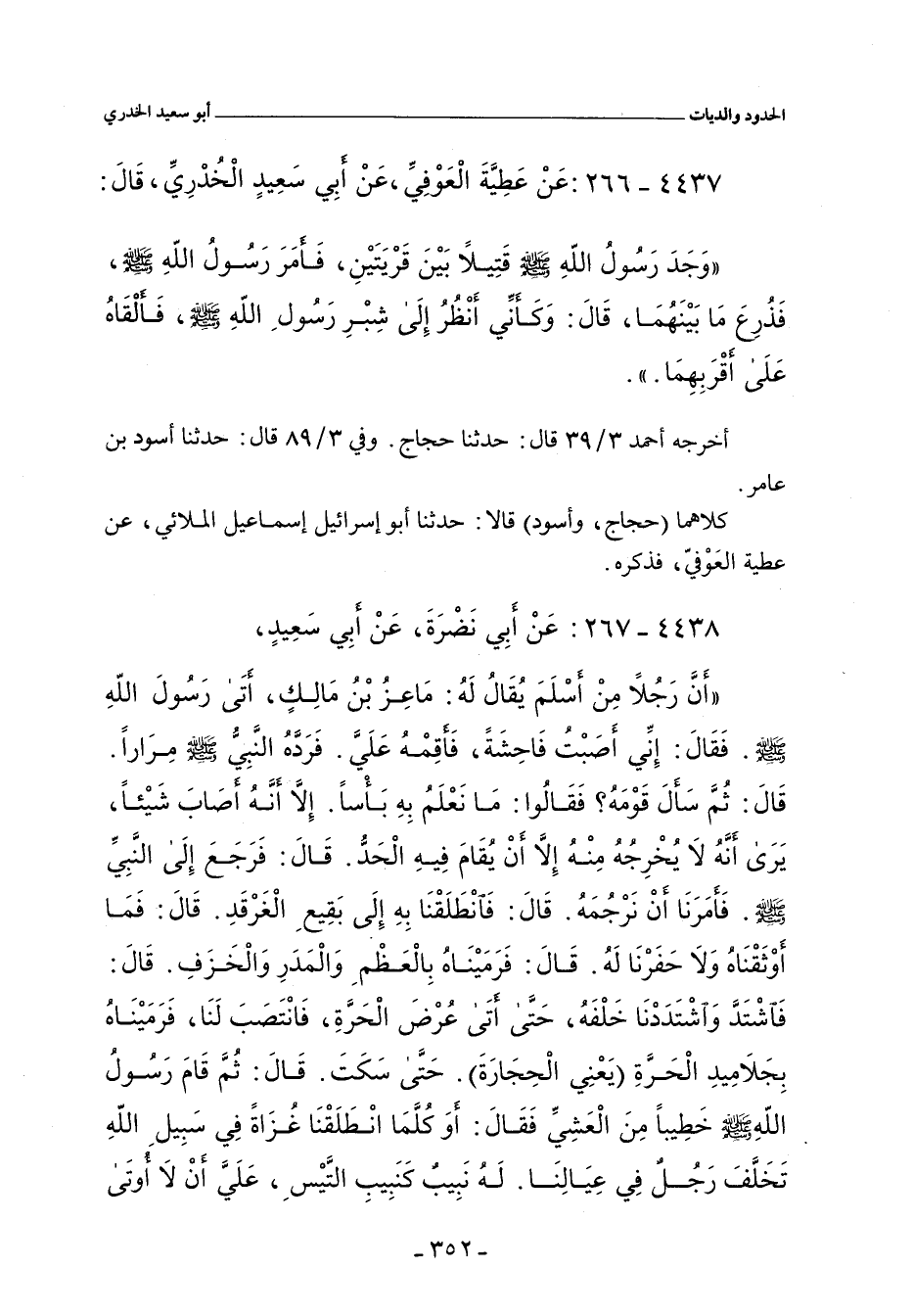٤٤٣٧ - عَنْ عَطِيَّةَ الْعَوْفِىِّ عَنْ أَبِى سَعِيدٍ الْخُدْرِىِّ قَالَ: