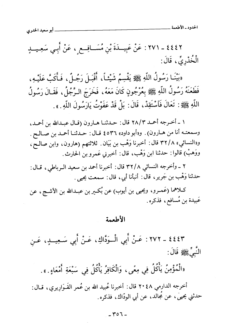 ٤٤٤٢ - عَنْ عَبِيدَةَ بْنِ مُسَافِعٍ عَنْ أَبِى سَعِيدٍ الْخُدْرِىِّ قَالَ: