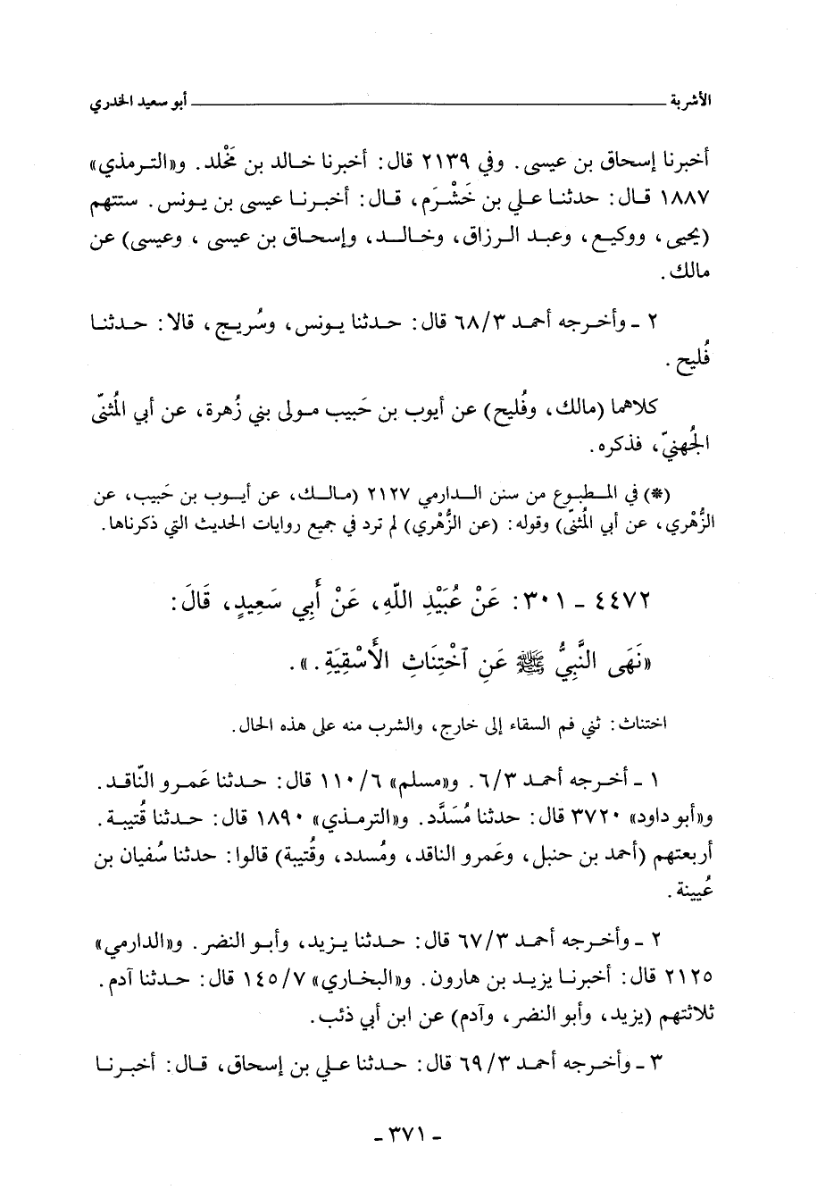 وفي ٣/ ٦٨ (١١٦٧٧) قال: حدَّثنا يونس، وسُرَيج. قالا: حدَّثنا فُلَيح. و"عَبد بن حُميد" ٩٨٠ قال: حدَّثني خالد بن مَخْلَد. قال: حدَّثني مالك. و"الدارِمِي" ٢١٢١ قال: أخبرنا إِسْحَاق بن عِيسَى، عن مالك. وفي (٢١٣٣) قال: أخبرنا خالد بن مَخْلَد، حدَّثنا مالك. والتِّرْمِذِيّ" ١٨٨٧ قال: حدَّثنا علي بن خَشرَم، أخبرنا عِيسَى بن يُونُس، عن مالك بن أَنَس.