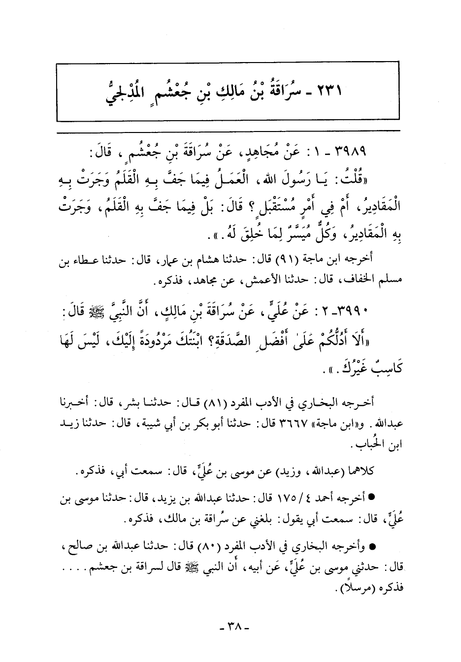 ٣٩٩٠ - عَنْ عُلَيِّ بْنِ رَبَاحٍ، عَنْ سُرَاقَةَ بْنِ مَالِكٍ، أَنَّ النَّبِيَّ صلى الله عليه وسلم قَالَ: