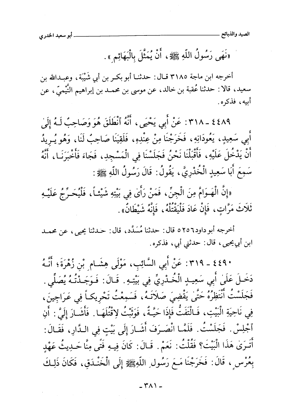 ٤٤٨٩ - عَنْ أَبي يَحيى، أَنَّهُ انطَلَقَ هُوَ وَصَاحِبٌ لَهُ إِلَى أَبي سَعِيد، يَعُودَانِهِ، فَخَرَجْنَا مِنْ عِنْدِهِ، فَلَقِيَنَا صَاحِب لَنَا، وَهُو يُرِيدُ أَنْ يَدْخُلَ عَلَيْهِ، فَأَقْبَلْنَا نَحْنُ فَجَلَسْنَا فِي اَلْمَسْجِد، فَجَاءَ فَأَخْبَرَنَا، أَنَّهُ سَمِعَ أَبَا سَعِيدٍ الْخُدْرِيّ، يَقُولُ: قَالَ رَسُولُ اللهِ صلى الله عليه وسلم: