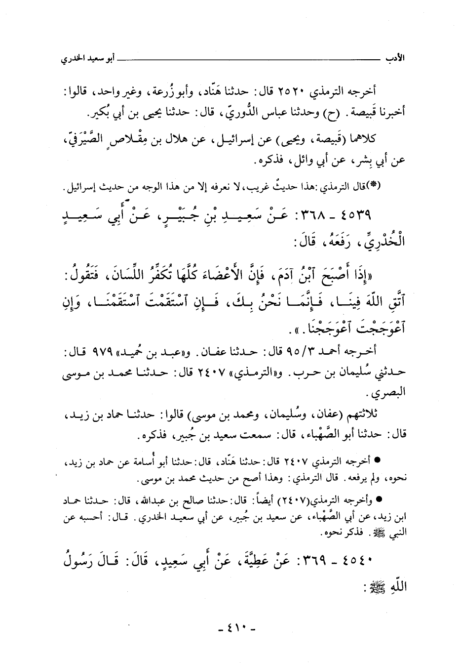 ٤٥٤٠ - عَنْ عَطِية، عَنْ أَبي سَعِيد، قَالَ: قَالَ رَسُولُ اللهِ صلى الله عليه وسلم: