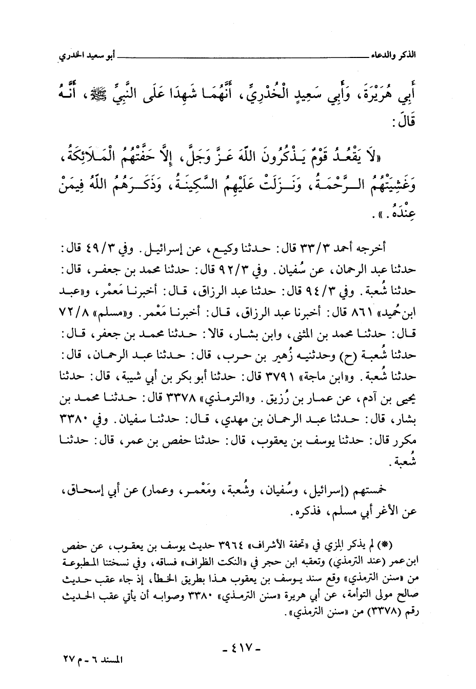 خمستهم (إسرائيل، وسُفْيان، وشُعْبة، ومعمر , وعمار) عن أَبي إِسْحَاق، عن الأَغر أَبي مُسْلم، فذكره.