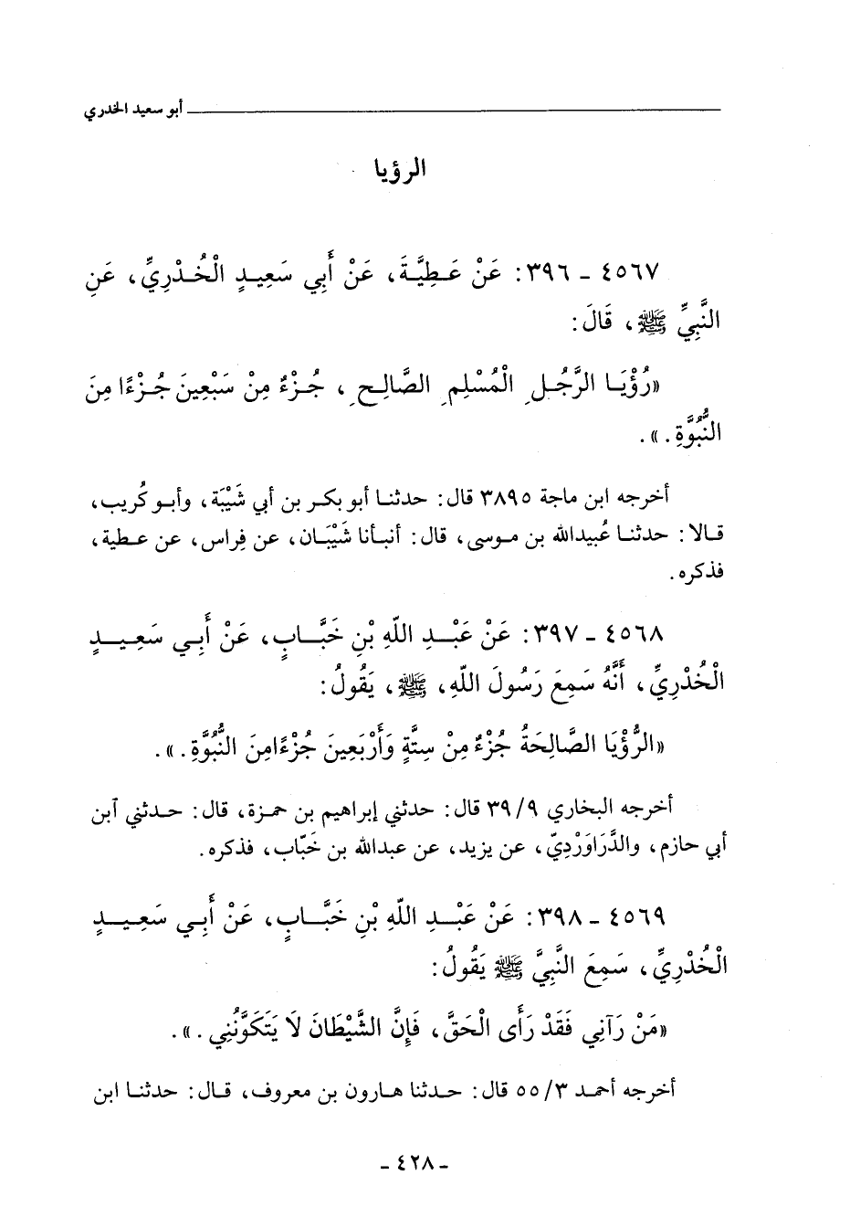 ٤٥٦٩ - عَنْ عَبْدِ اللهِ بْنِ خَبَّابٍ عَنْ أَبِى سَعِيدٍ الْخُدْرِىِّ سَمِعَ النَّبِيَّ صلى الله عليه وسلم , يَقُولُ: