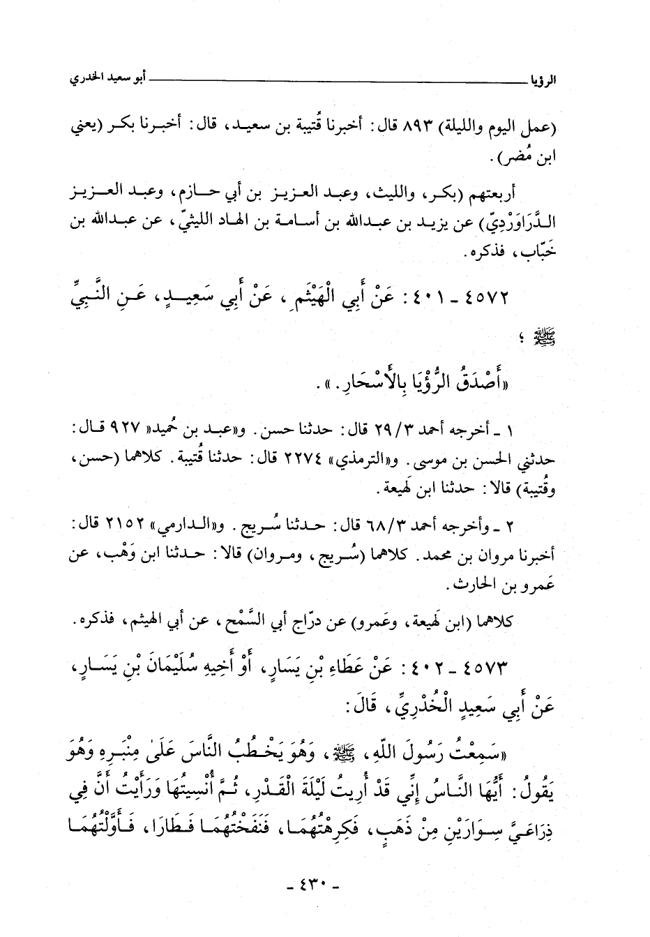 أربعتهم (بَكْر، واللَّيْث، وعَبْد العَزِيز بن أَبي حازم، وعَبْد العَزِيز بن مُحَمد الدَّرَاوَردِيّ) عن يَزِيد بن عَبْد اللهِ بن أُسَامة بن الهاد اللَّيْثِي، عن عَبْد اللهِ بن خَبّاب، فذكره.