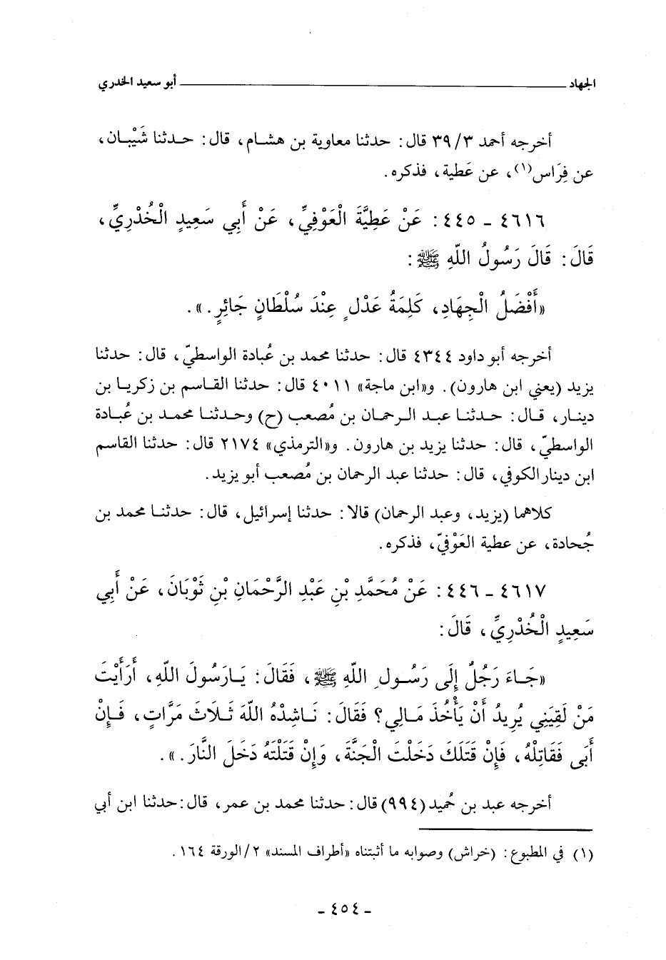 أَفْضَلُ الْجِهَادِ كَلِمَةُ عَدْلٍ عِنْدَ سُلْطَانٍ جَائِرٍ.