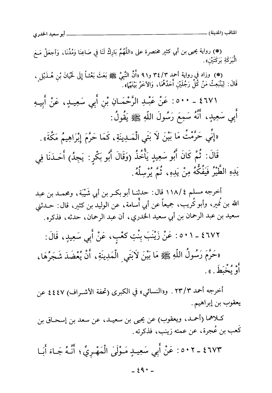 ٤٦٧٢ - عَنْ زَيْنَبَ بِنْتِ كعْب، عَنْ أَبي سَعِيدٍ، قَالَ: