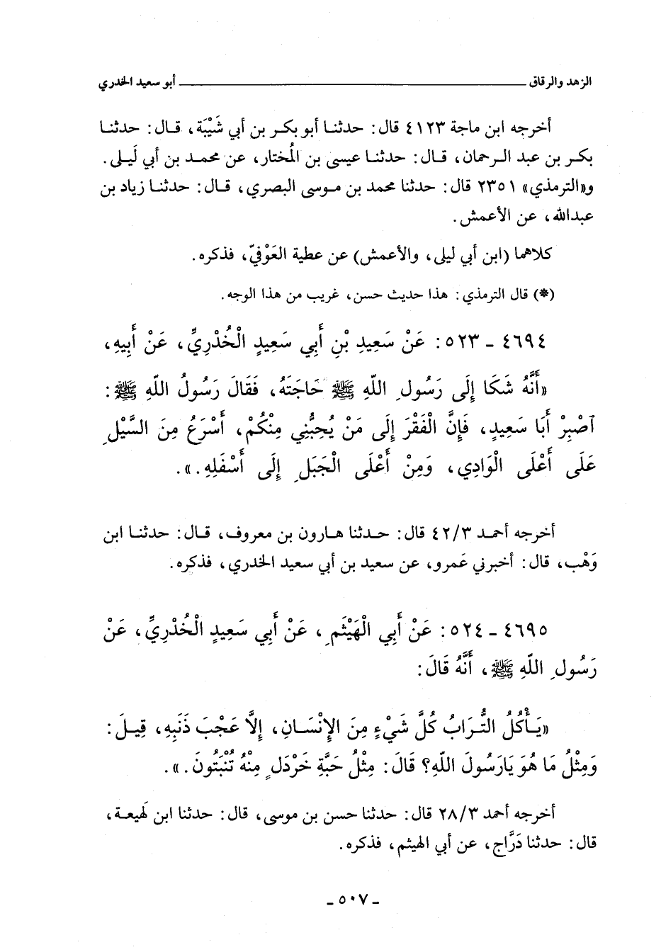 ٤٦٩٤ - عَنْ سَعِيدِ بْنِ أَبِى سَعِيدٍ الْخُدْرِىِّ، عَنْ أَبِيهِ؛