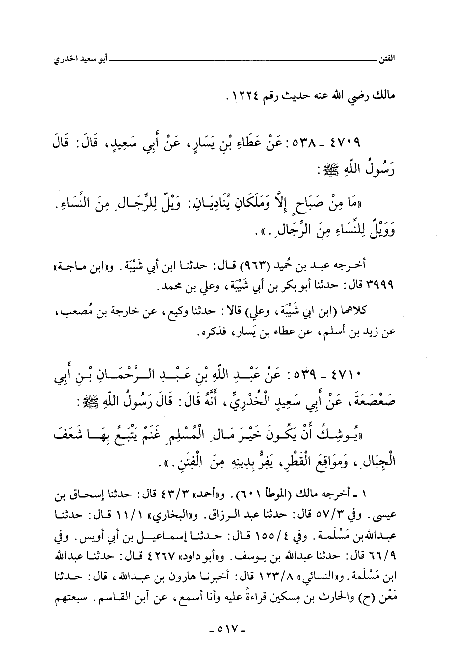 ٤٧٠٩ - عَنْ عَطَاءِ بْنِ يَسَارٍ، عَنْ أَبِى سَعِيدٍ، قَالَ: قَالَ رَسُولُ اللهِ صلى الله عليه وسلم: