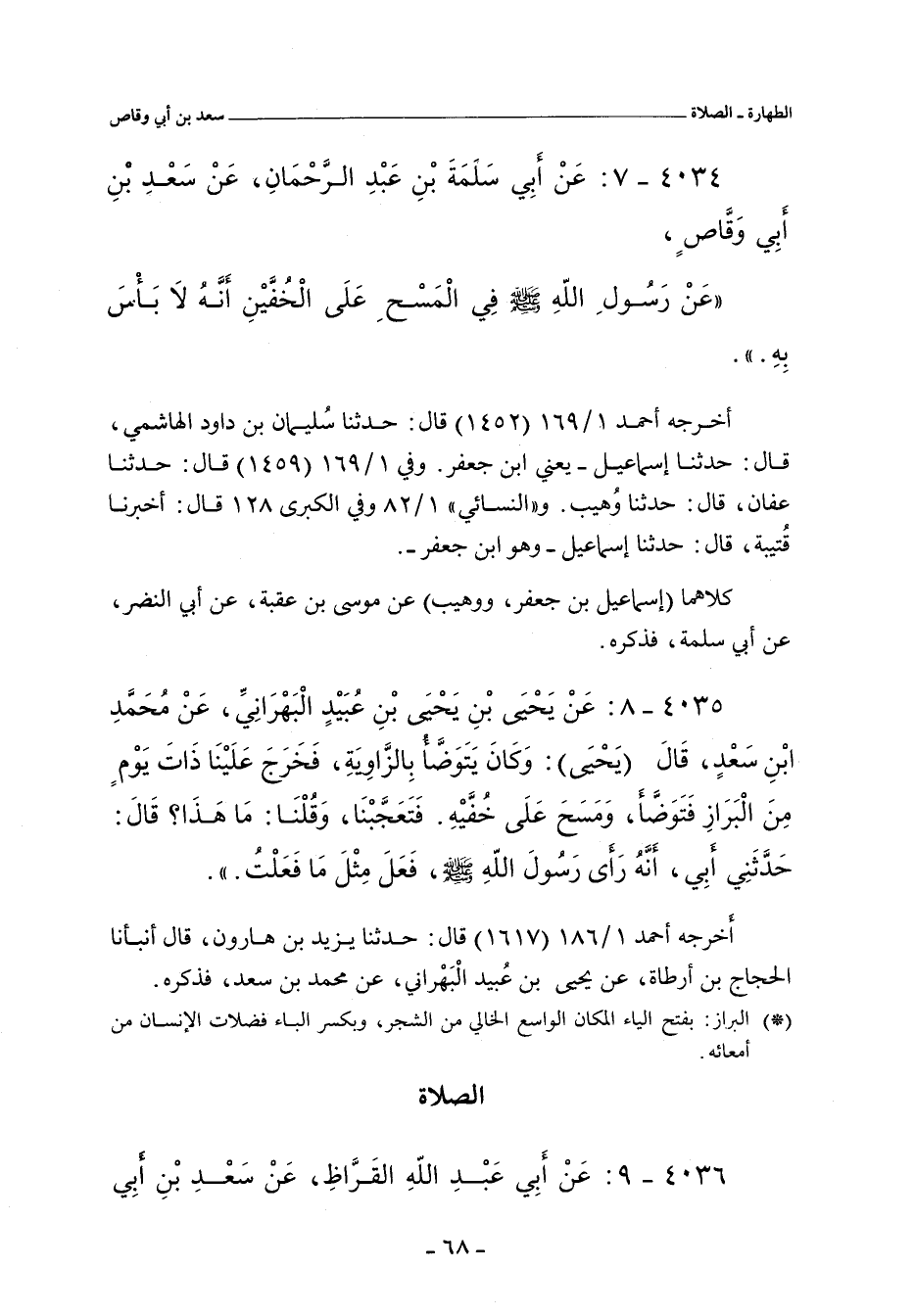 ٤٠٣٥ - عَنْ يَحْيَى بْنِ عُبَيْدٍ الْبَهْرَانِىِّ , عَنْ مُحَمَّدِ بْنِ سَعْدٍ، قَالَ: وَكَانَ يَتَوَضَّأُ بِالزَّاوِيَةِ فَخَرَجَ عَلَيْنَا ذَاتَ يَوْمٍ مِنَ الْبَرَازِ، فَتَوَضَّأَ، وَمَسَحَ عَلَى خُفَّيْهِ، فَتَعَجَّبْنَا، وَقُلْنَا: مَا هَذَا قَالَ: حَدَّثَنِى أَبِى؛