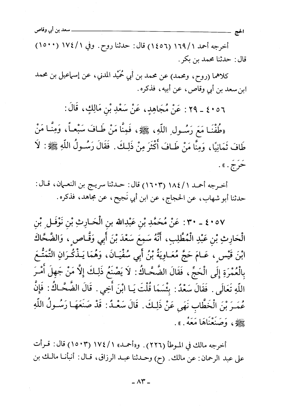 ٤٠٥٧ - عَنْ مُحَمَّدِ بْنِ عَبْدِ اللهِ بْنِ الْحَارِثِ بْنِ نَوْفَلِ بْنِ عَبْدِ الْمُطَّلِبِ , أَنَّهُ حَدَّثَهُ أَنَّهُ سَمِعَ سَعْدَ بْنَ أَبِى وَقَّاصٍ , وَالضَّحَّاكَ بْنَ قَيْسٍ , عَامَ حَجَّ مُعَاوِيَةُ بْنُ أَبِى سُفْيَانَ , وَهُمَا يَذْكُرَانِ التَّمَتُّعَ بِالْعُمْرَةِ إِلَى الْحَجِّ , فَقَالَ الضَّحَّاكُ: لَا يَصْنَعُ ذَلِكَ إِلَاّ مَنْ جَهِلَ أَمْرَ اللهِ تعالى. فَقَالَ سَعْدٌ: بِئْسَمَا قُلْتَ يَا ابْنَ أَخِى. قَالَ الضَّحَّاكُ: فَإِنَّ عُمَرَ بْنَ الْخَطَّابِ ْ نَهَى عَنْ ذَلِكَ. فَقَالَ سَعْدٌ: