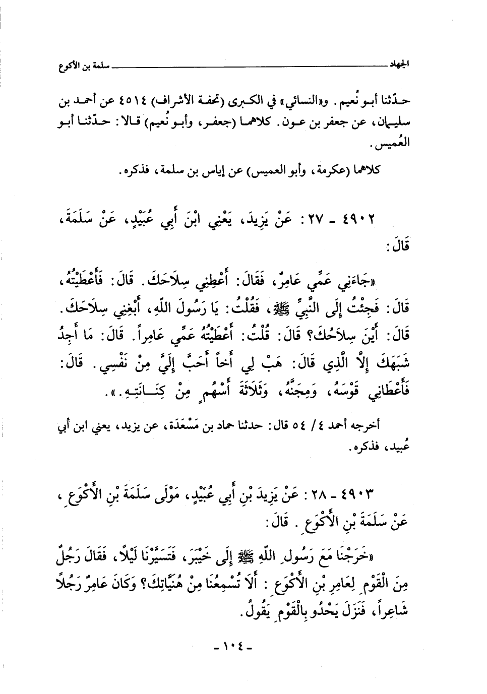 ٤٩٠٣ - عَنْ يَزِيدَ بن أَبي عُبَيدِ، مَولَى سَلَمَةَ بن الأَكوَعِ، عَن سَلَمَةَ بْنِ الأَكْوَعِ. قَالَ: