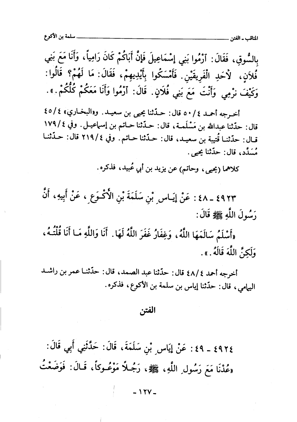 ٤٩٢٤ - عن إياس بن سلمة , حدثني أبي , قال: