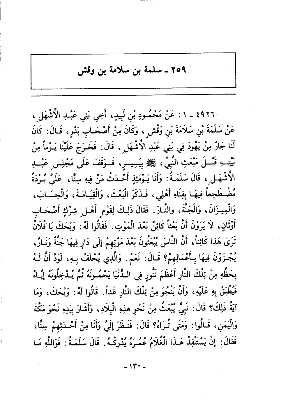 ٢٥٩ - سلمة بن سلامة بن وقش الأنصاري