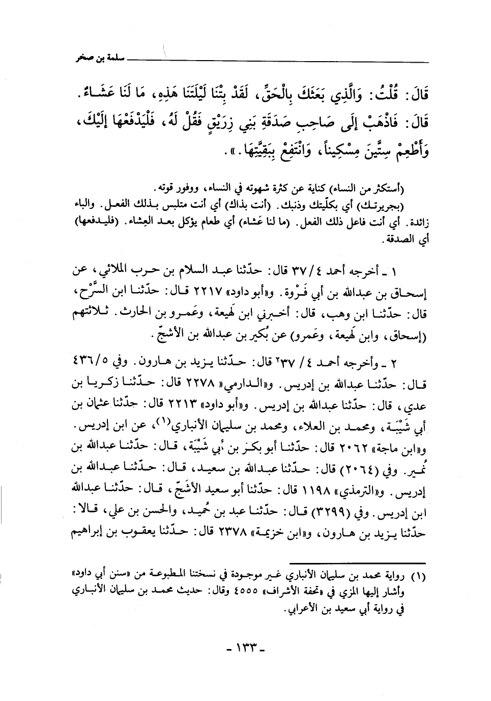 أخرجه أحمد ٤/ ٣٧ (١٦٥٣٥) قال: حدثنا يزيد بن هارون , قال: أخبرنا محمد بن إسحاق، عن محمد بن عَمرو بن عطاء. وفي ٥/ ٤٣٦ (٢٤١٠٠) قال: حدثنا عَبْد الله بن إدريس، عن محمد بن إسحاق، عن محمد بن عَمرو بن عطاء. و"الدارِمِي" ٢٢٧٣ قال: حدثنا زكريا بن عَدي، حدثنا عَبْد الله بن إدريس، عن محمد بن إسحاق، عن محمد بن عَمرو. و"أبو داود" ٢٢١٣ قال: حدثنا عُثمان بن أَبي شَيبة، ومحمد بن العلاء قالا: حدثنا ابن إدريس، عن محمد بن إسحاق، عن محمد بن عَمرو بن عطاء (قال ابن العلاء: ابن علقمة بن عَيّاش. وفي (٢٢١٧) قال: حدثنا ابن السَّرح، حدثنا ابن وَهب، أخبرني ابن لَهيعة، وعَمرو بن الحارث، عن بُكير بن الأشج. و"ابن ماجة" ٢٠٦٢ قال: حدثنا أبو بكر بن أَبي شَيبة، حدثنا عَبْد الله بن نُمير، حدثنا محمد بن إسحاق، عن محمد بن عَمرو بن عطاء. والتِّرْمِذِيّ" ٣٢٩٩ قال: حدثنا عَبد بن حُميد، والحسن بن علي، حدثنا يزيد بن هارون، حدثنا محمد بن إسحاق، عن محمد بن عَمرو بن عطاء. و"ابن خزيمة" ٢٣٧٨ قال: حدثنا يعقوب بن إبراهيم