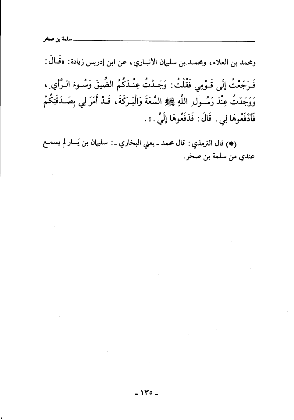 كلاهما عن عبد الله بن سعيد أَبي سعيد الأشج، حدثنا عبد الله بن إدريس، عن محمد بن إسحاق، عن محمد بن عَمرو بن عطاء، عن سليمان بن يسار، عن سلمة بن صخر البياضي، عن النبي صلى الله عليه وسلم؛ في المُظَاهِرِ، يواقعُ قبل أن يُكَفِّر َ، قال: كفارة واحدة. مختصر.