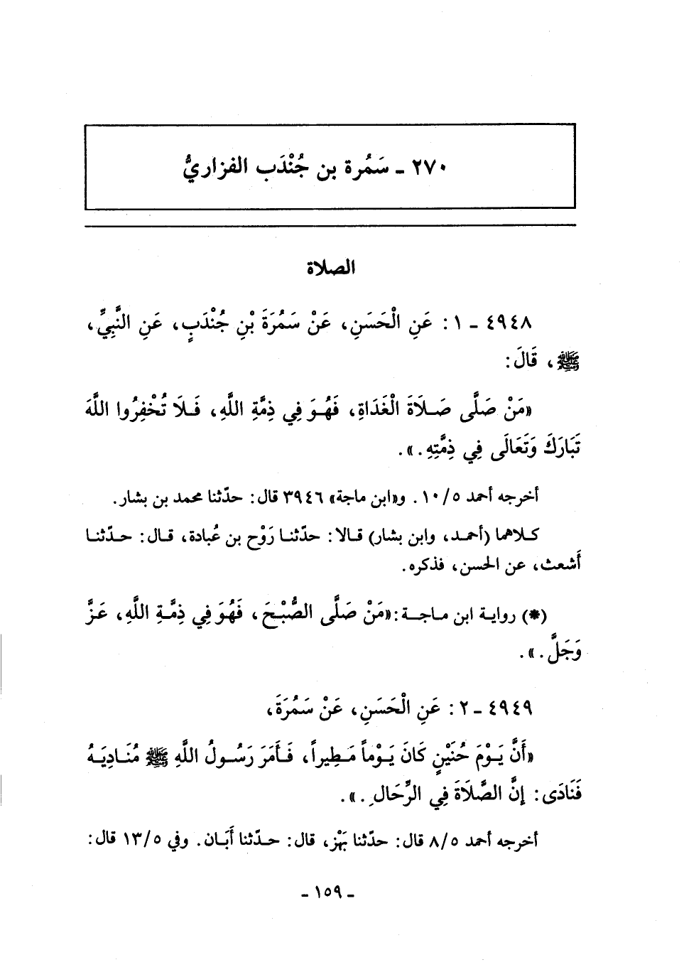 مَنْ صَلَّى صَلَاةَ الْغَدَاةِ , فَهُوَ فِى ذِمَّةِ الله , فَلَا تُخْفِرُوا الله , تَبَارَكَ وَتَعَالَى , فِي ذِمَّتِهِ.