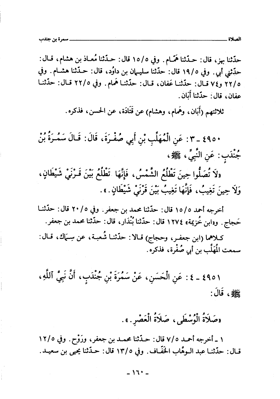 ٤٩٥٠ - عن الملهب بن أبي صفرة , قال: قال سمرة بن جندب: عن النبي , صلى الله عليه وسلم: