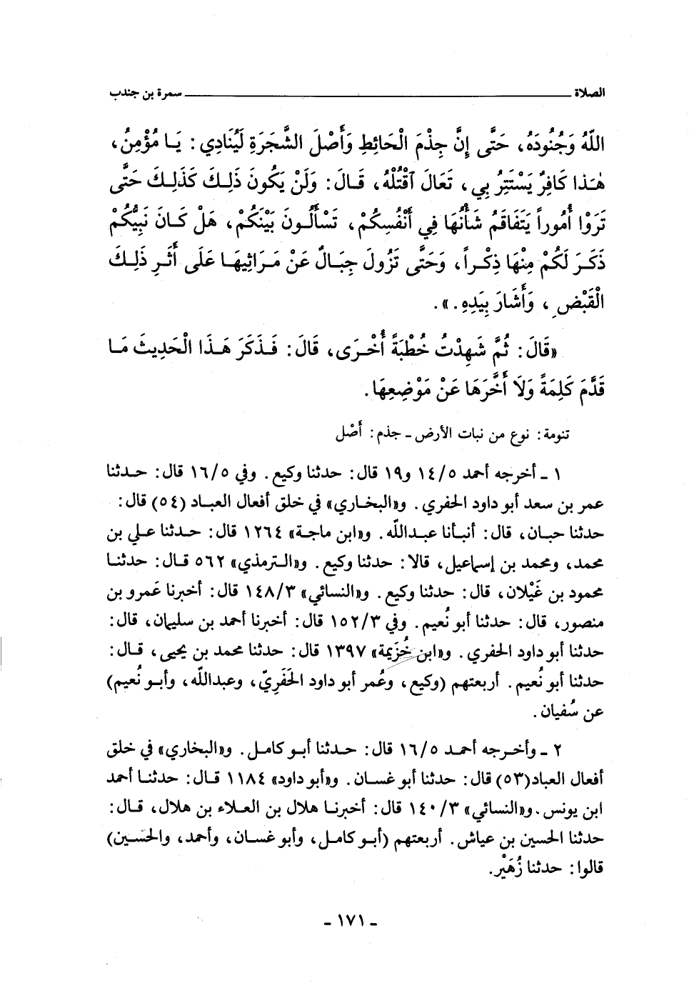 قَالَ: ثُمَّ شَهِدْتُ خُطْبَةً لِسَمُرَةَ ذَكَرَ فِيهَا هَذَا الْحَدِيثَ فَمَا قَدَّمَ كَلِمَةً وَلَا أَخَّرَهَا عَنْ مَوْضِعَهَا.
