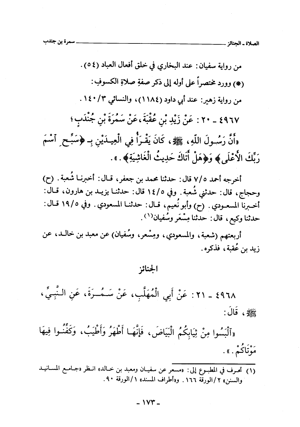 ٤٩٦٧ - عَن زَيد بن عُقبَة َ، عَن سَمُرَةَ بن جُندَبٍ؛